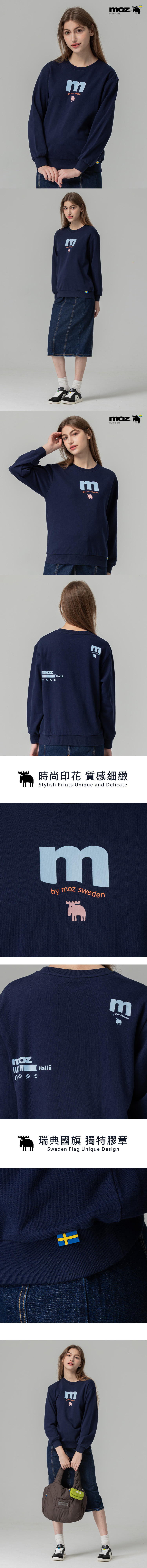 moz瑞典 字母駝鹿 100%純棉 大學T-深藍(亞洲版) 女款