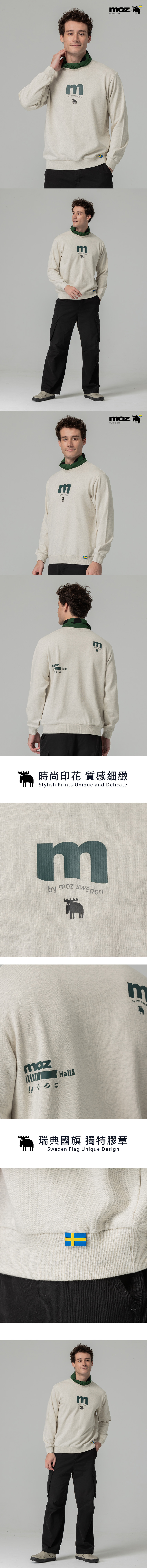 moz瑞典 字母駝鹿 100%純棉 大學T-麻花灰(亞洲版) 男款