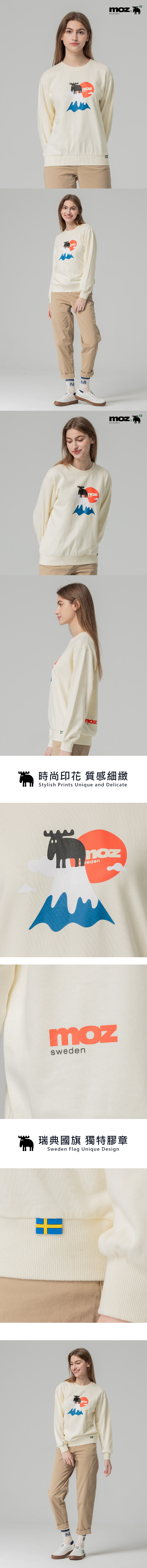 moz瑞典 富士山駝鹿 100%純棉 大學T-奶油白(亞洲版) 女款