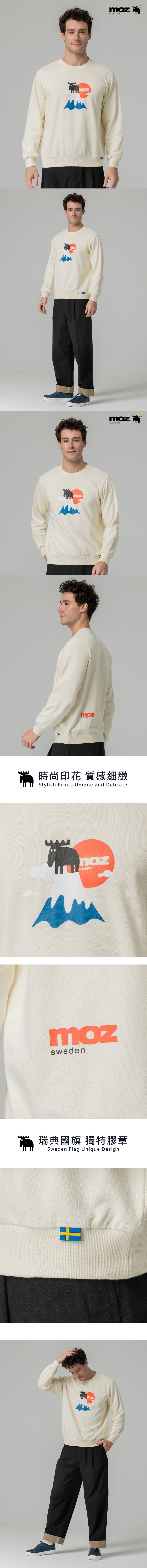 moz瑞典 富士山駝鹿 100%純棉 大學T-奶油白(亞洲版) 男款