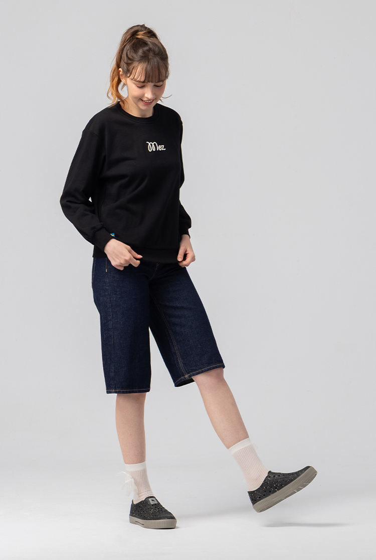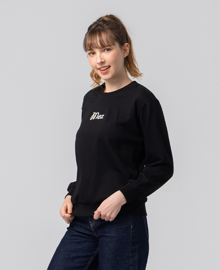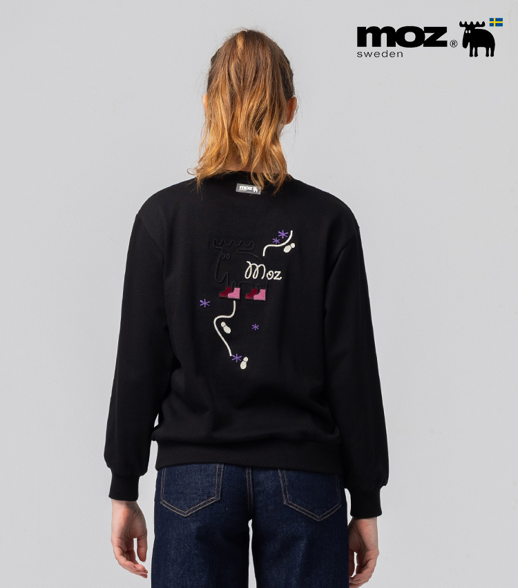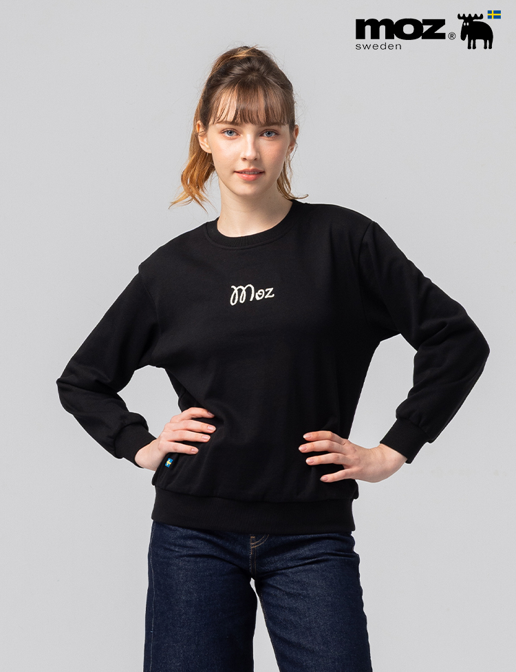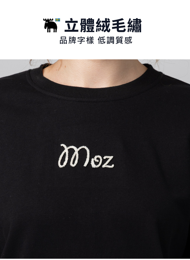 絨毛繡 駝鹿足跡 100%純棉 大學T-經典黑(亞洲版) 女款