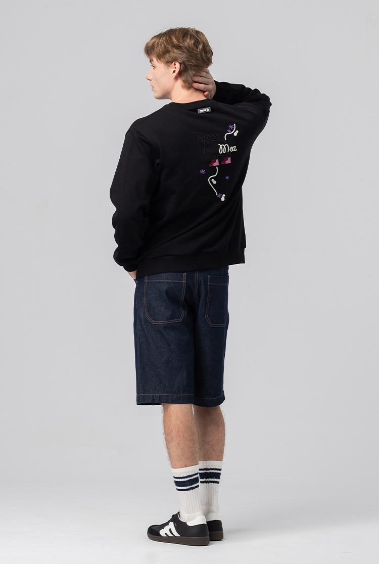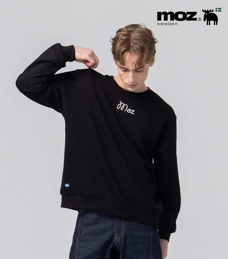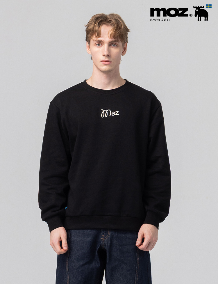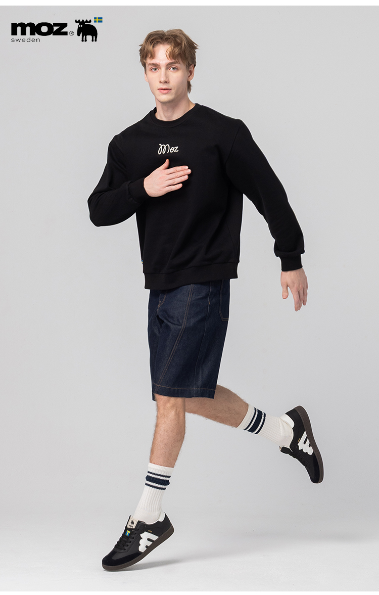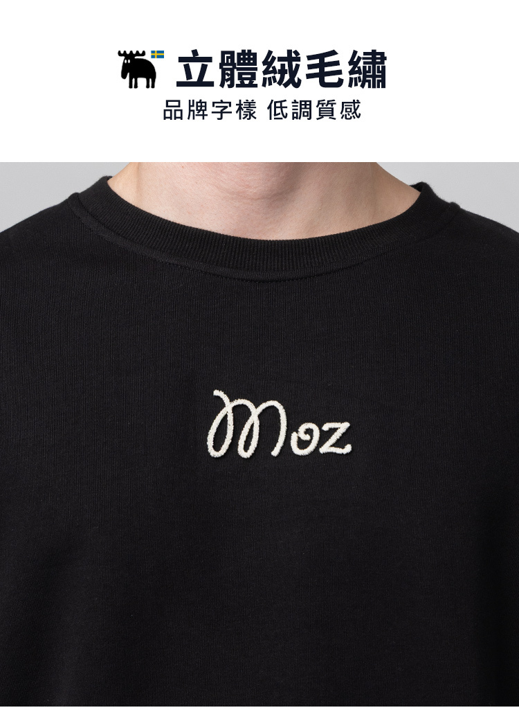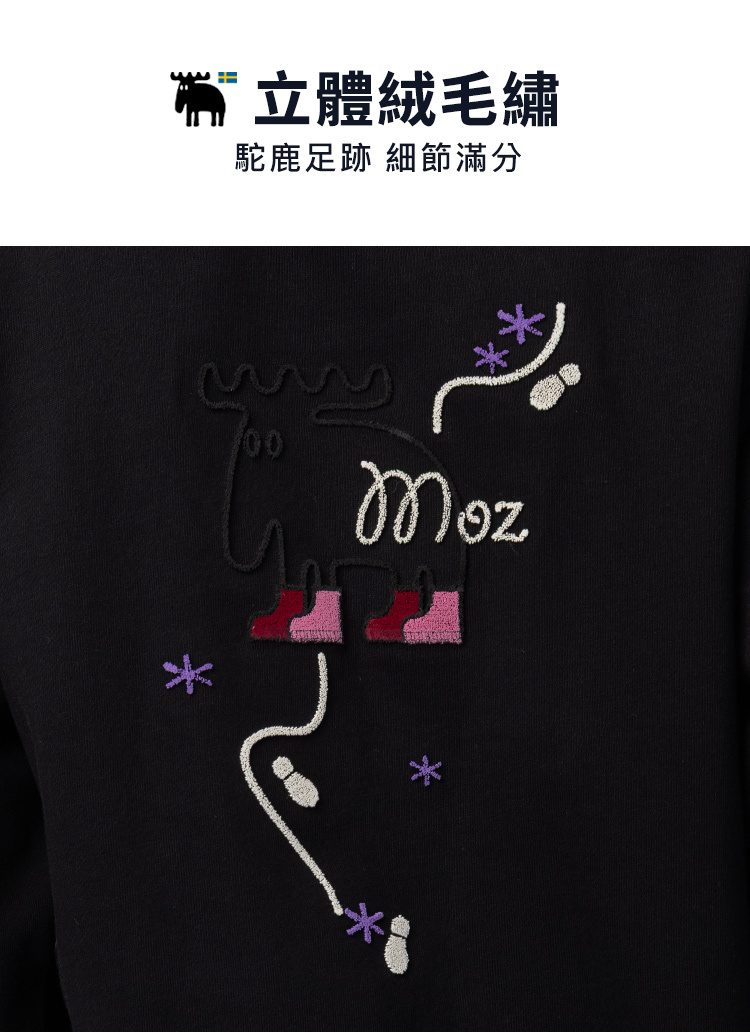 絨毛繡 駝鹿足跡 100%純棉 大學T-經典黑(亞洲版) 男款