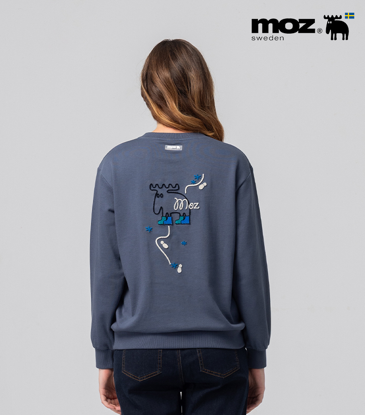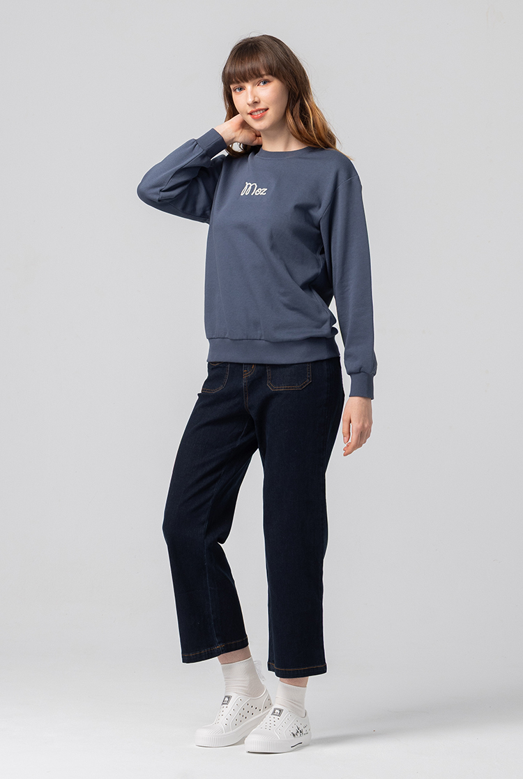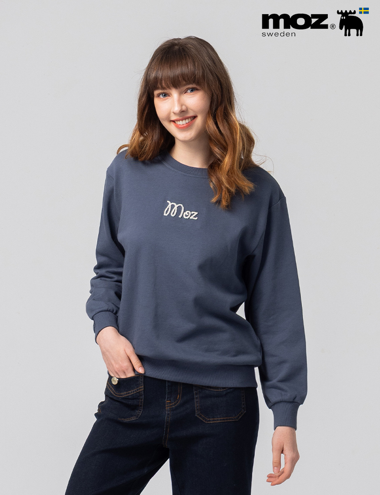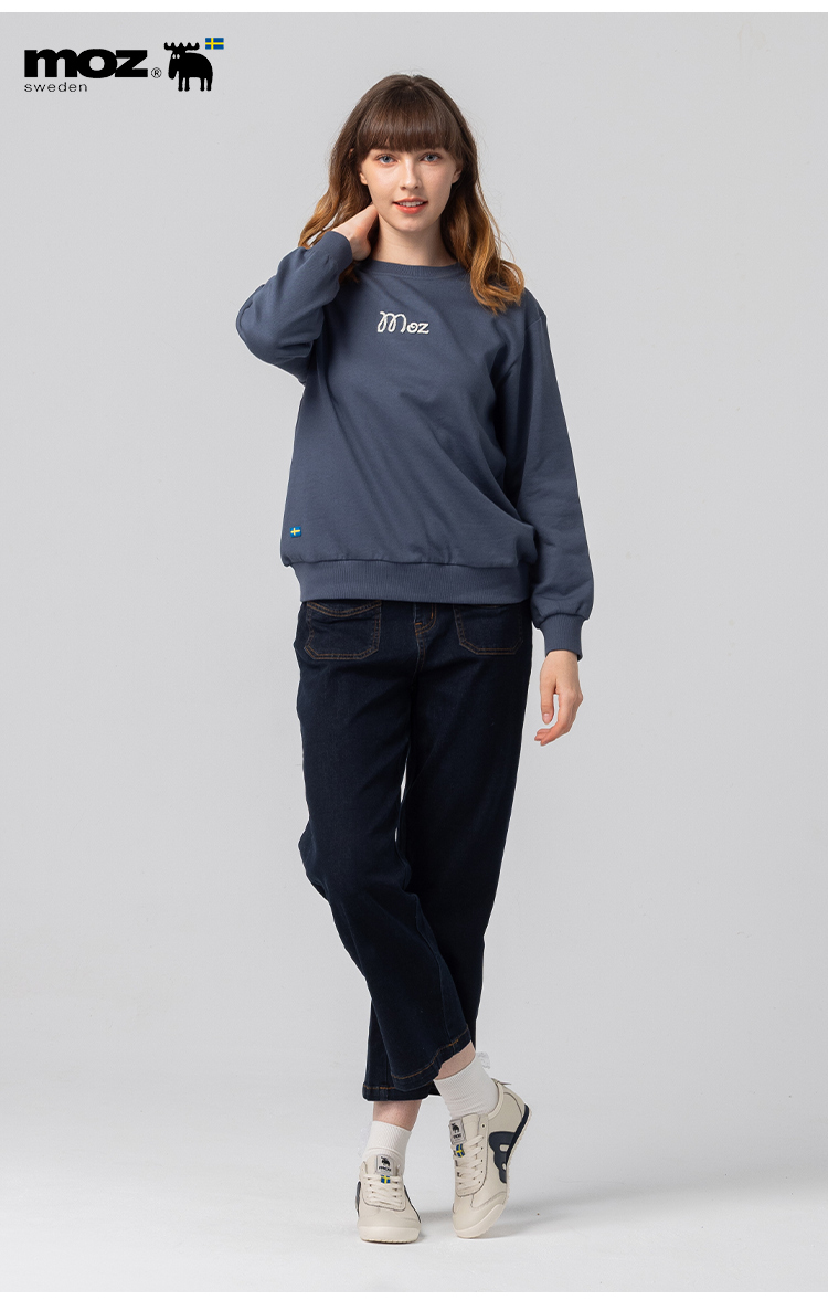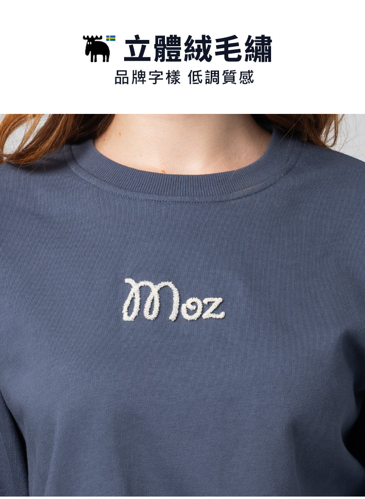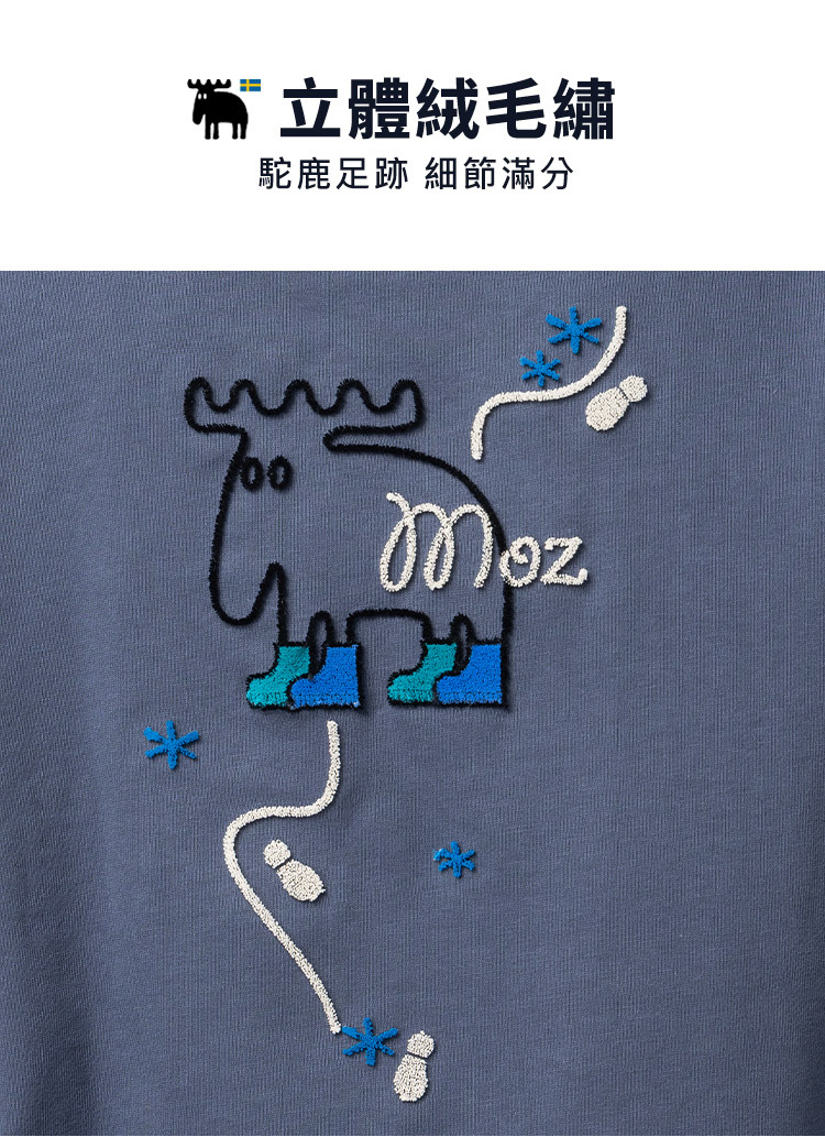 絨毛繡 駝鹿足跡 100%純棉 大學T-霧灰藍(亞洲版) 女款