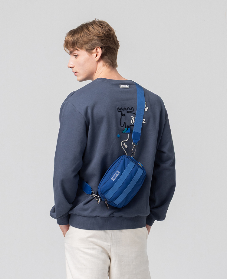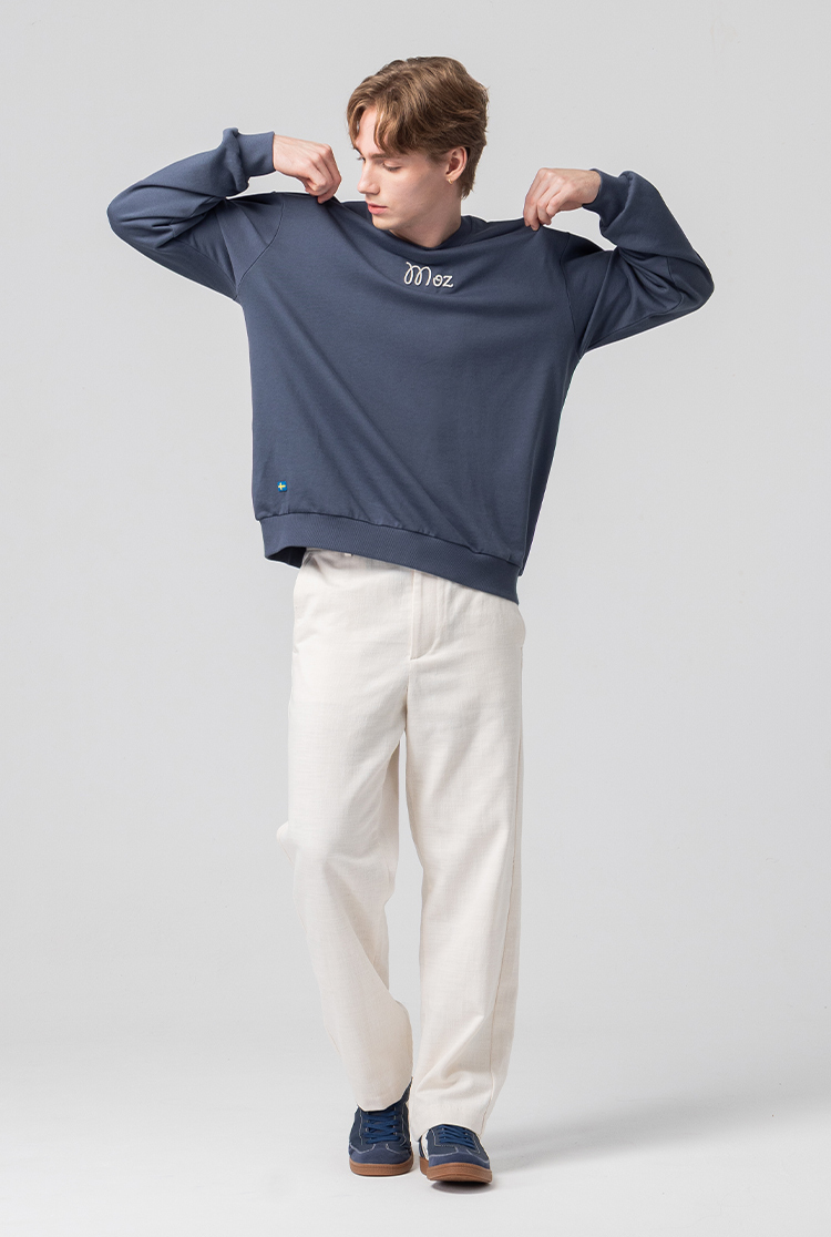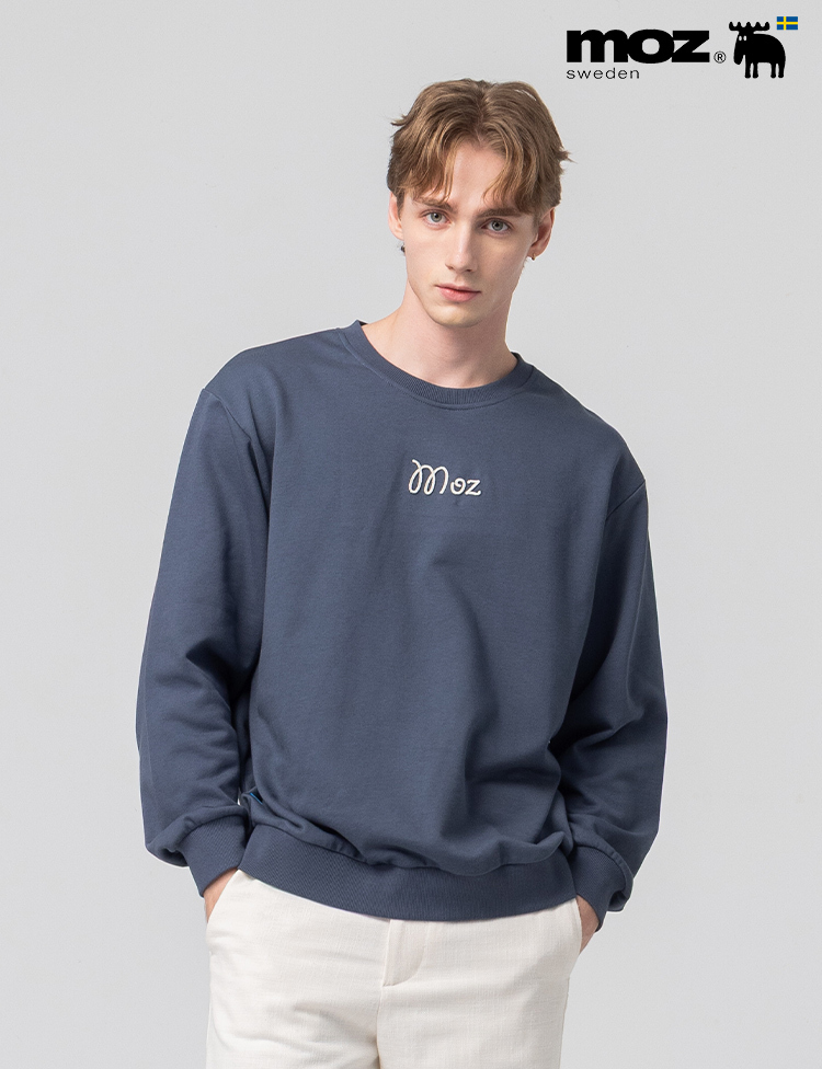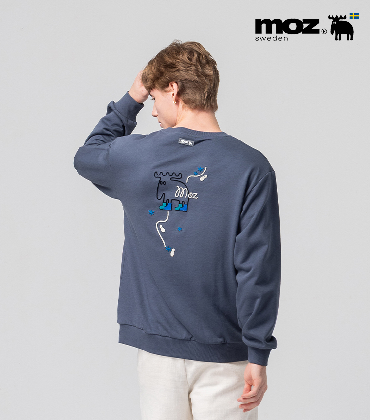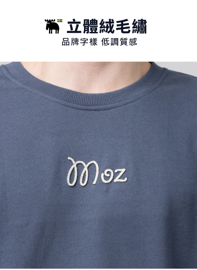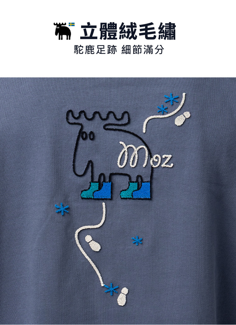 絨毛繡 駝鹿足跡 100%純棉 大學T-霧灰藍(亞洲版) 男款