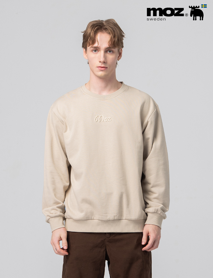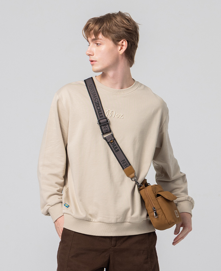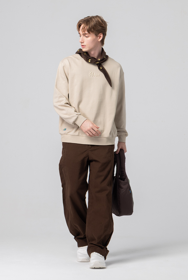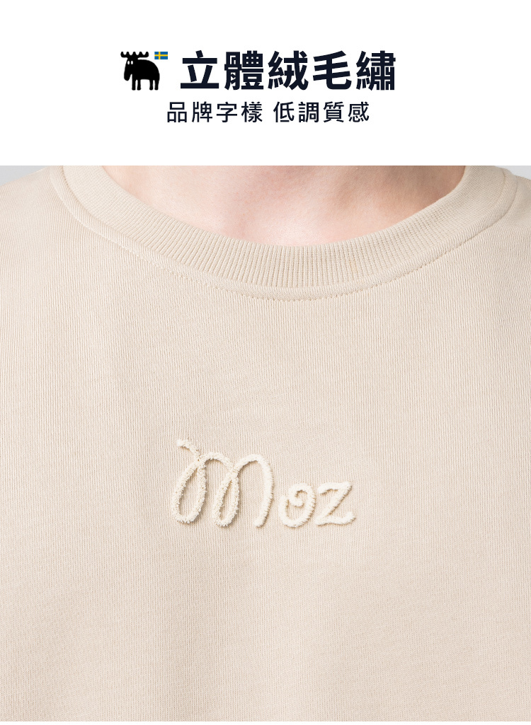 絨毛繡 駝鹿足跡 100%純棉 大學T-淺卡其(亞洲版) 男款