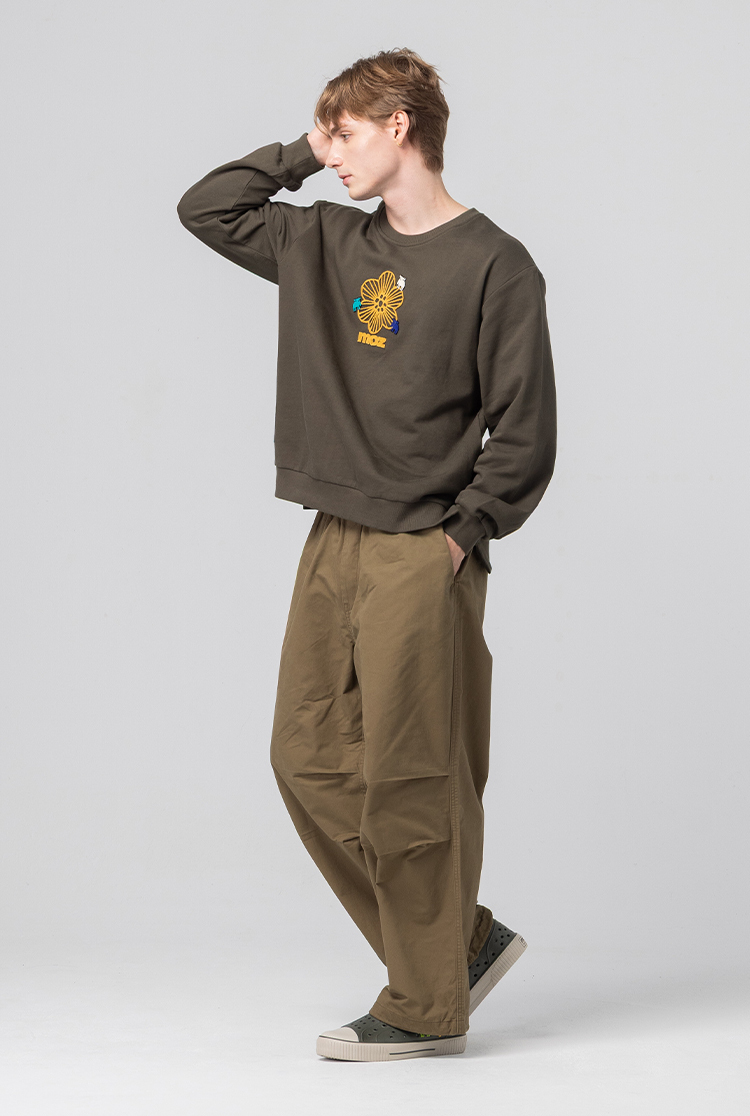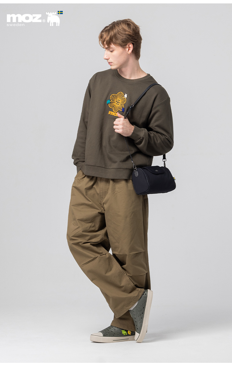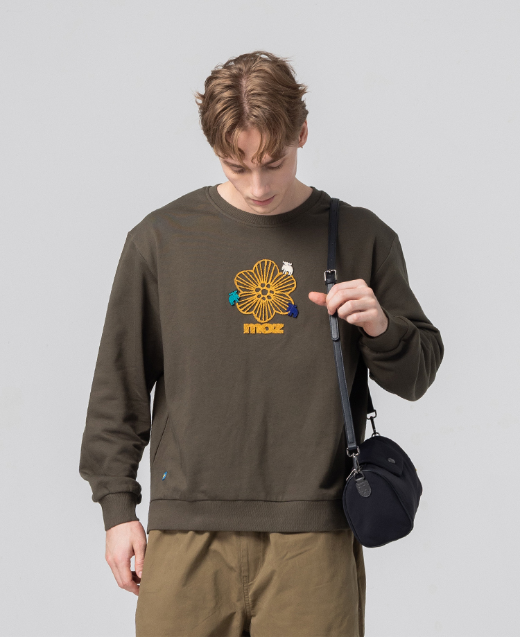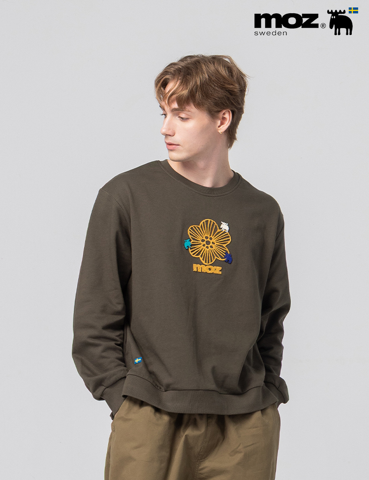 絨毛繡 駝鹿Bloom 100%純棉 大學T-軍綠(亞洲版) 開衩 男款