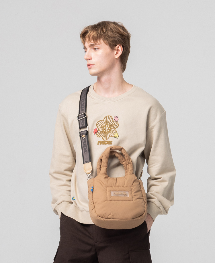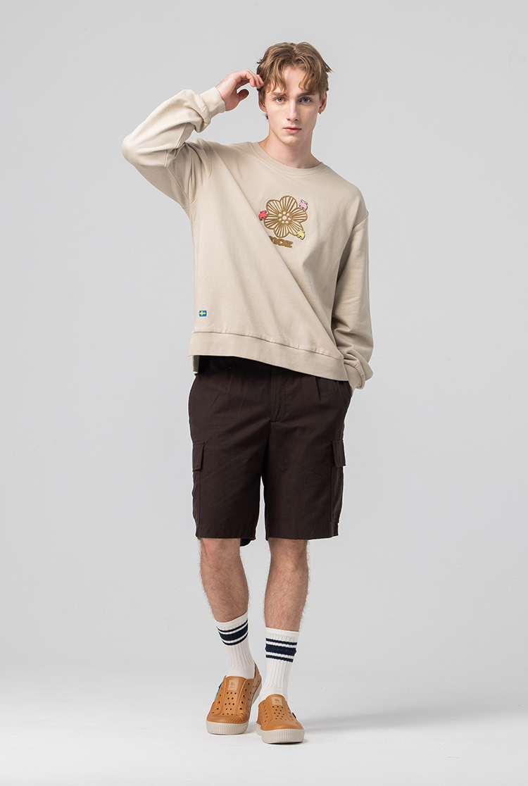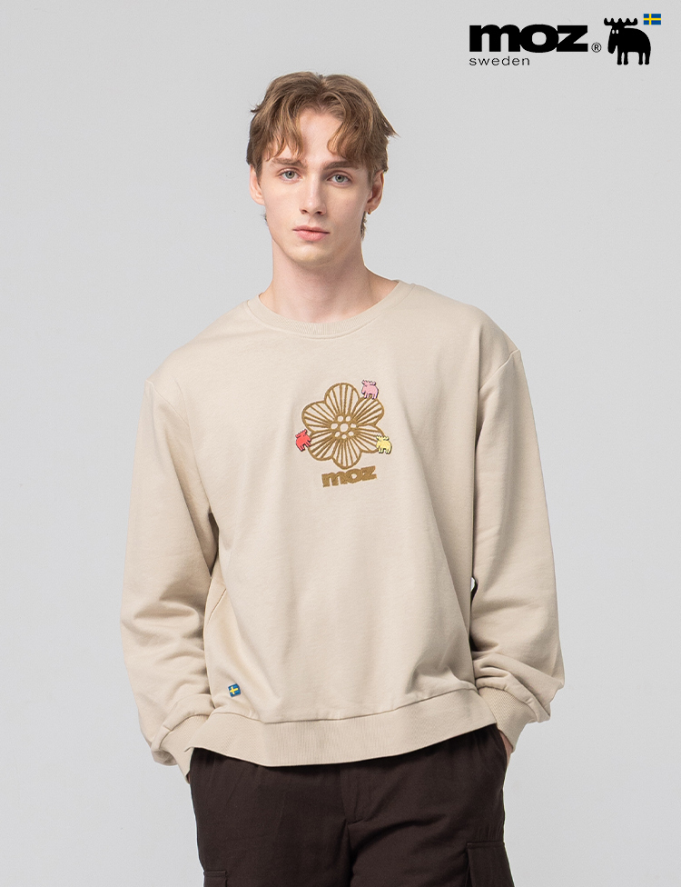 絨毛繡 駝鹿Bloom 100%純棉 大學T-淺卡其(亞洲版) 開衩 男款