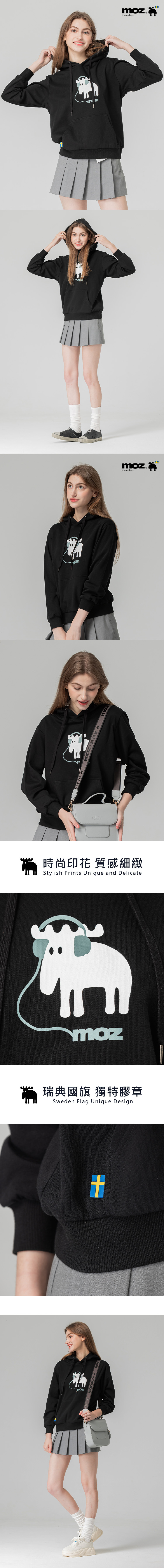 moz瑞典 B-BOY駝鹿 100%純棉 帽T-黑(亞洲版) 女款