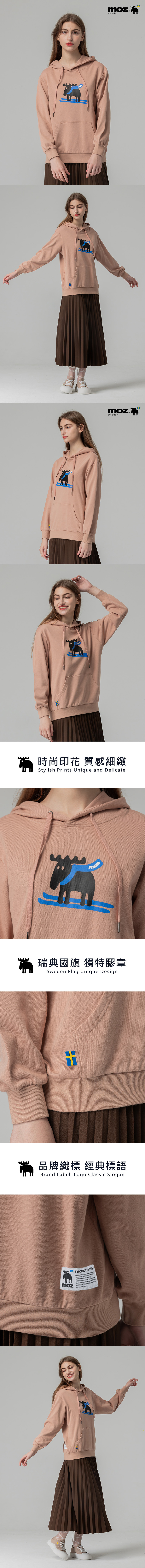 moz瑞典 雪橇駝鹿 100%純棉 帽T-霧粉(亞洲版) 女款