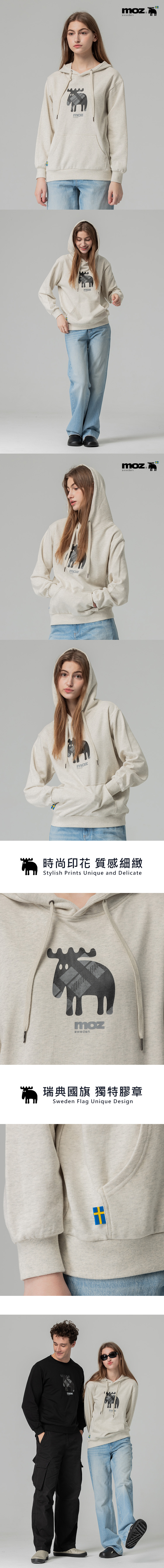 moz瑞典 格紋駝鹿 100%純棉 帽T-麻花灰(亞洲版) 女款