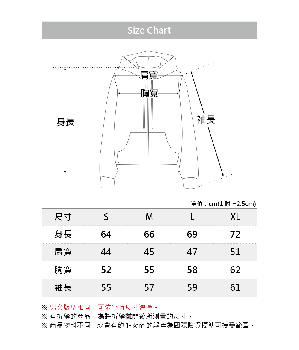 *此款為男女共款,選購尺寸請參考下方尺寸表說明