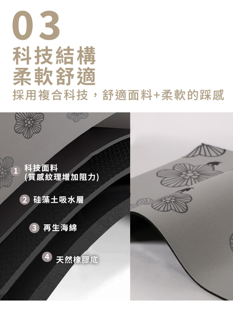 ▪️ 軟硅藻吸水,踩上去就乾爽