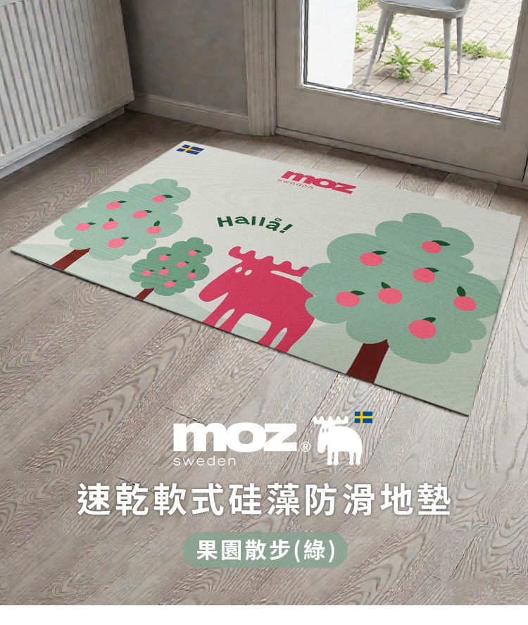 速乾軟式硅藻防滑地墊- 果園散步(綠)