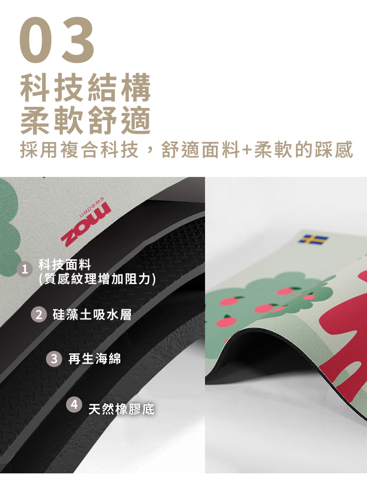地墊採 四層結構設計,兼顧吸水、耐用與止滑效果。