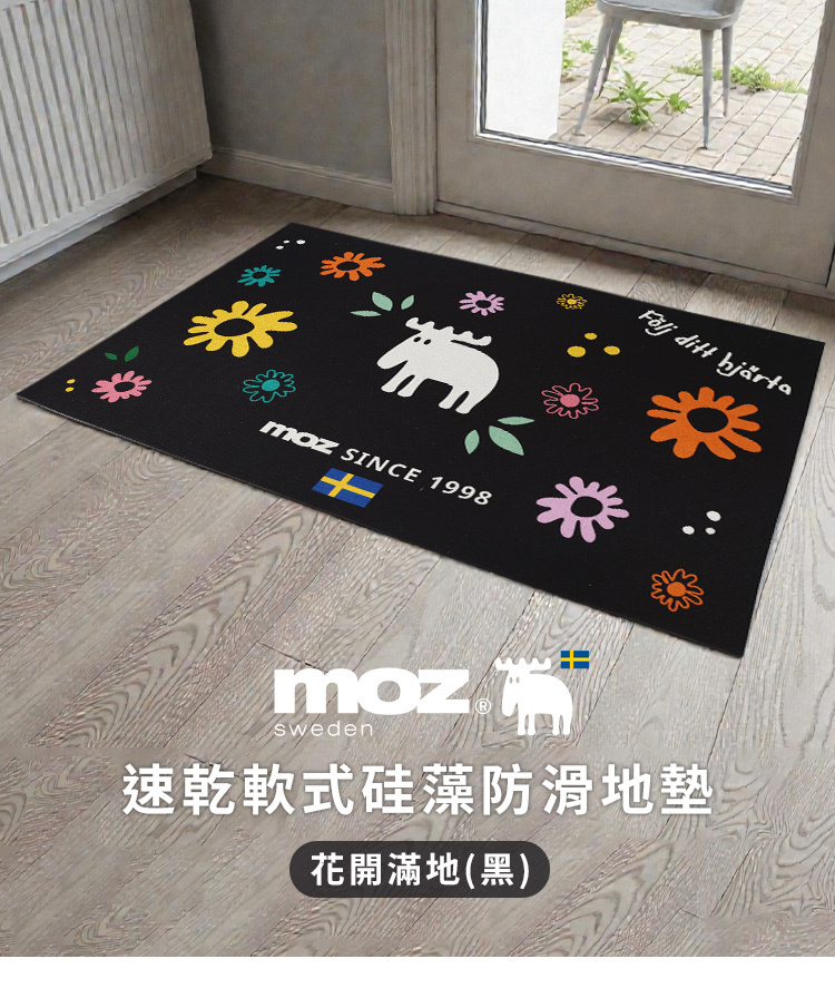 速乾軟式硅藻防滑地墊- 花開滿地(黑)