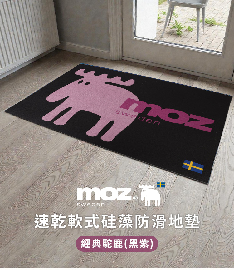 速乾軟式硅藻防滑地墊- 經典駝鹿(黑紫)