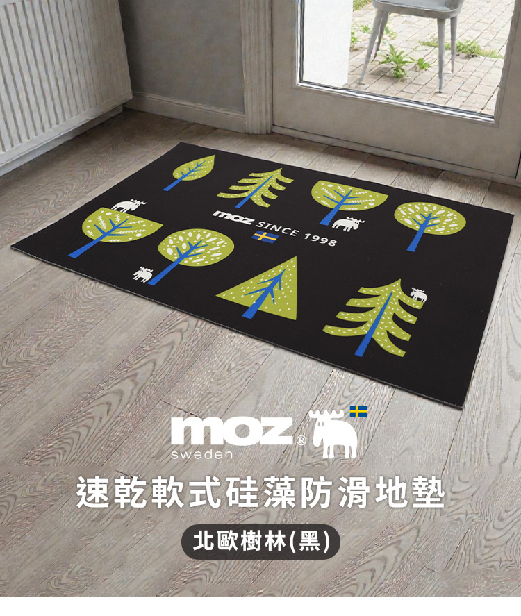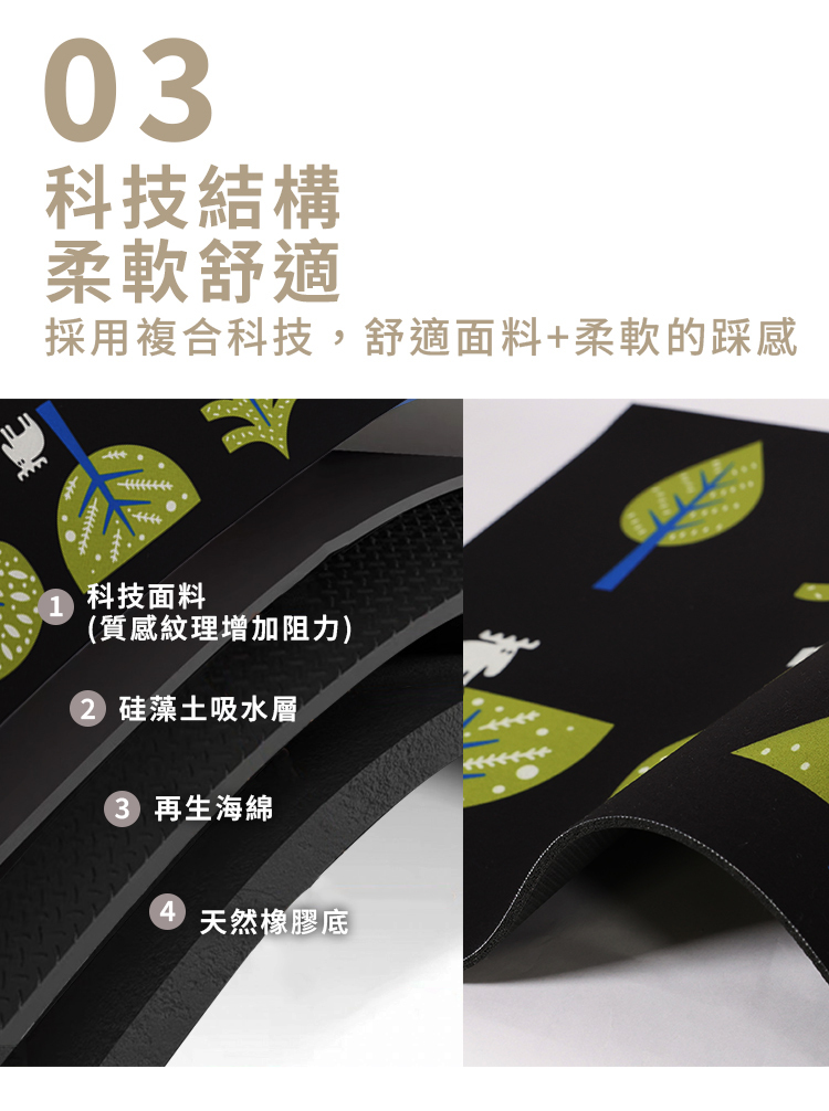 速乾軟式硅藻防滑地墊- 北歐樹林(黑)