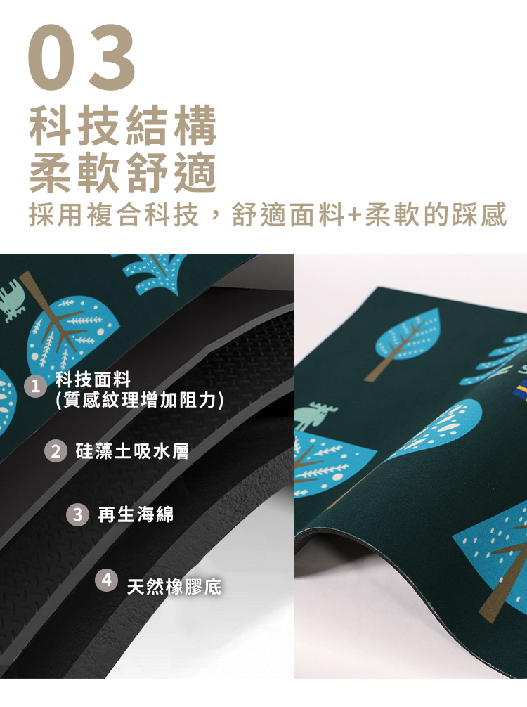 速乾軟式硅藻防滑地墊- 北歐樹林(綠)