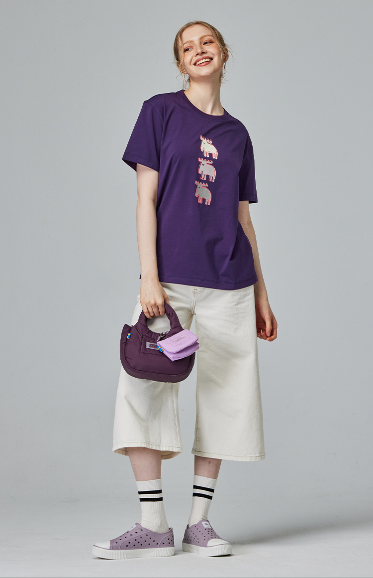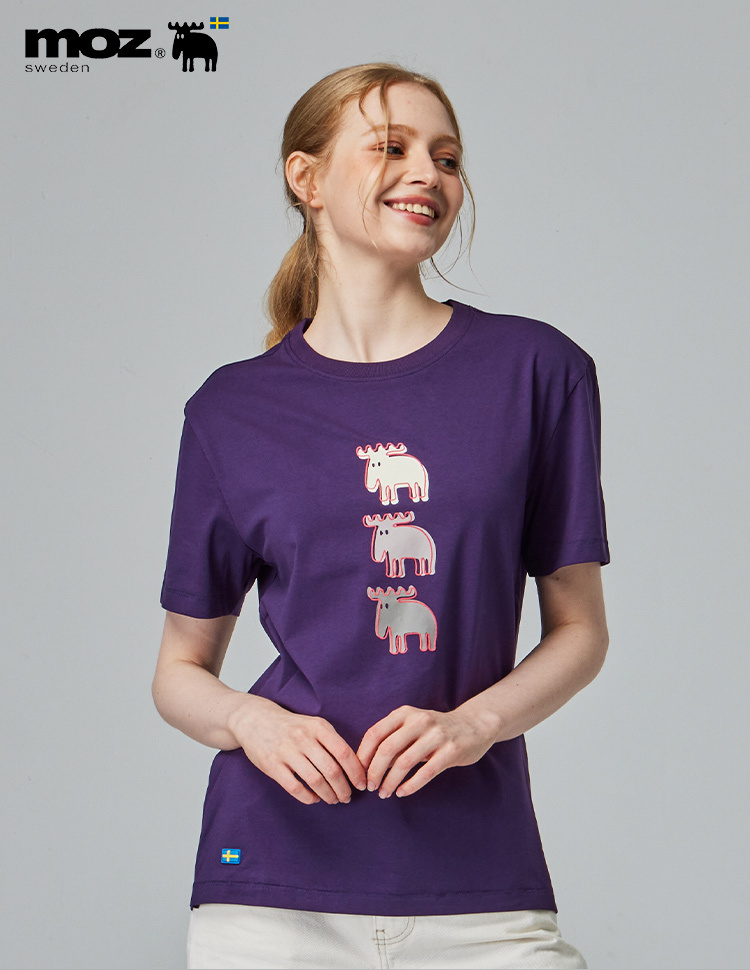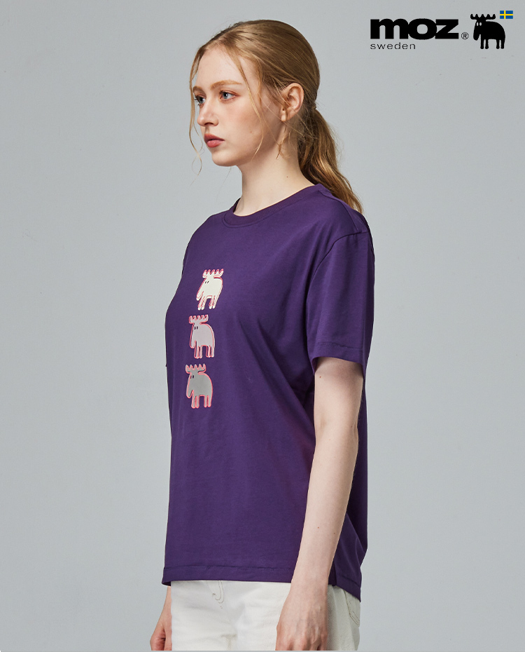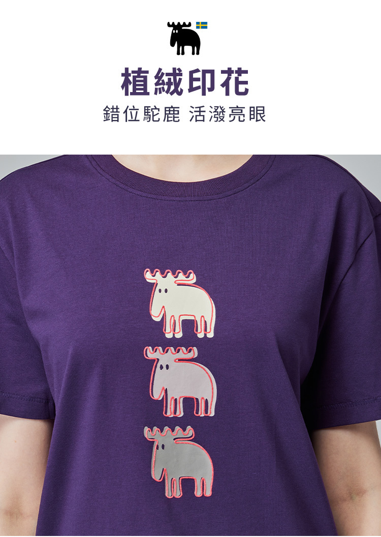 moz 植絨 錯位駝鹿 舒涼 柔彈T恤-深紫 女款