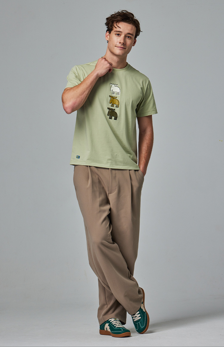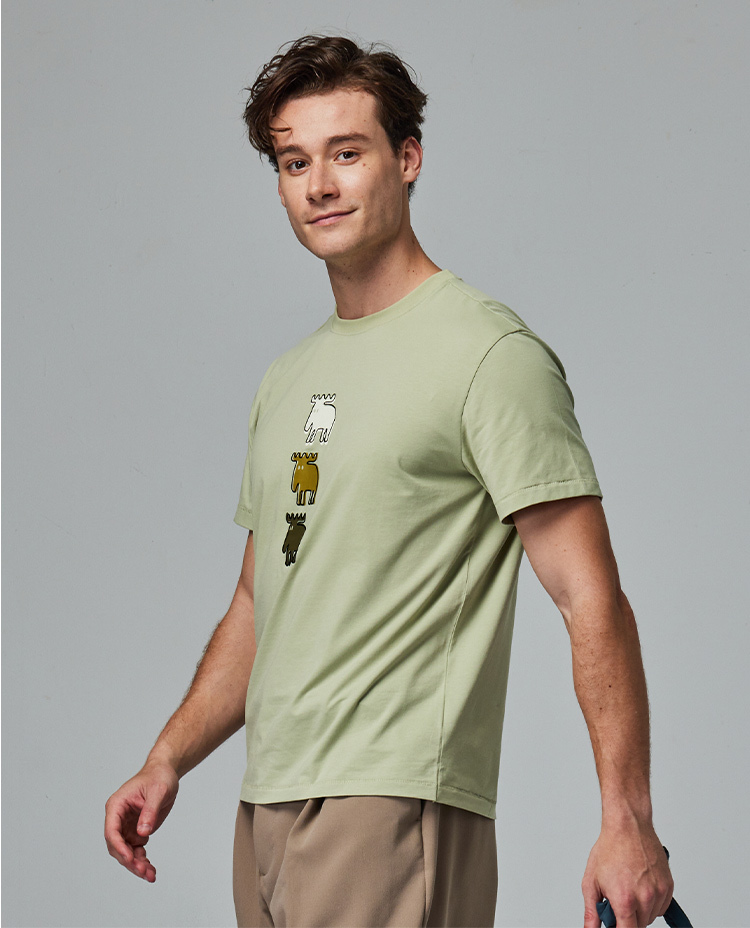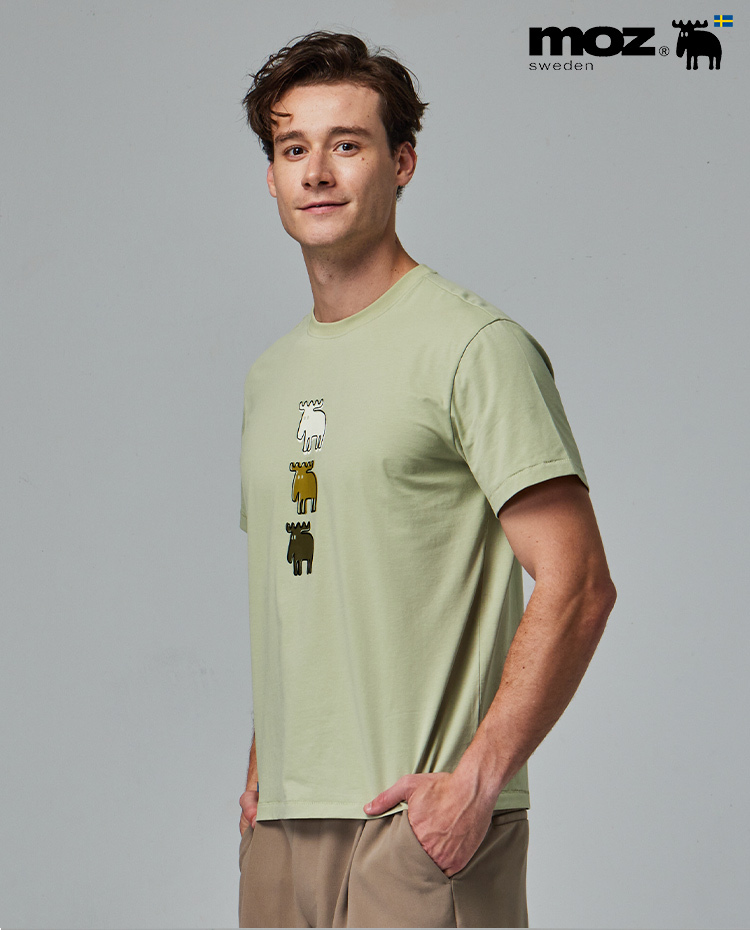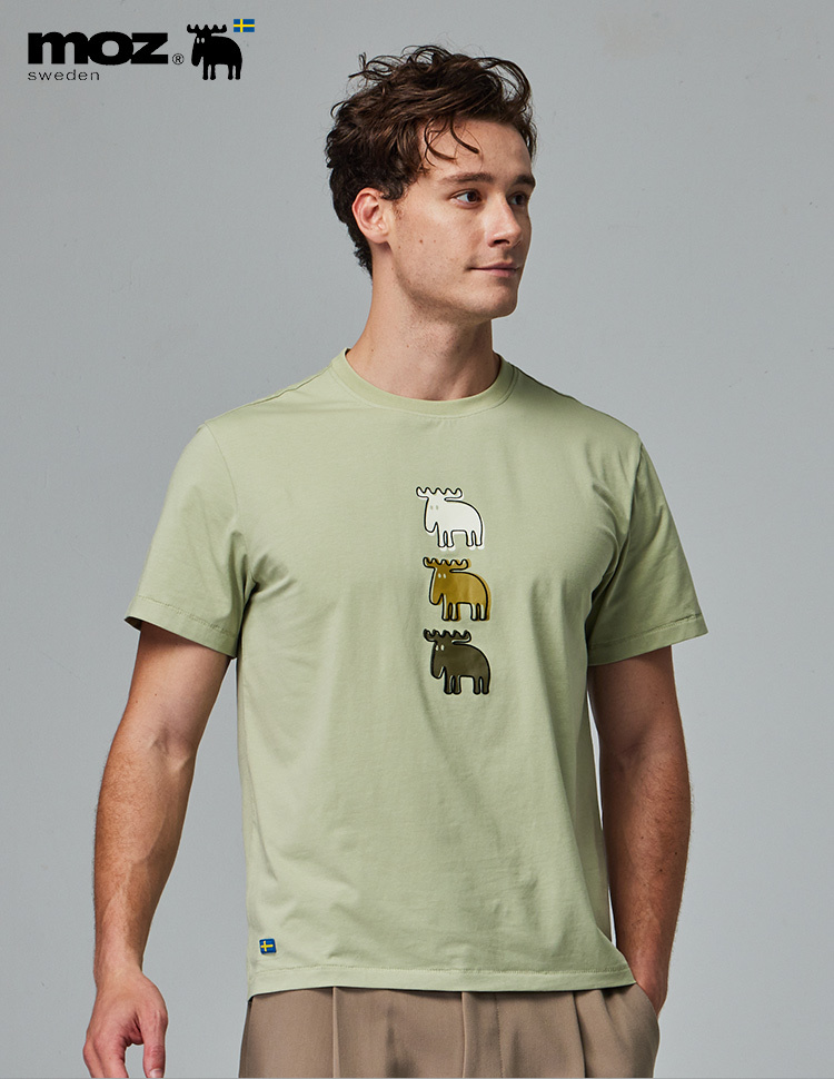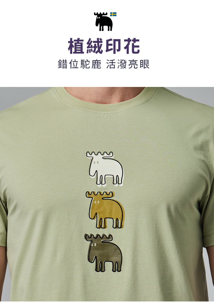 moz 植絨 錯位駝鹿 舒涼 柔彈T恤-酪梨綠 男款
