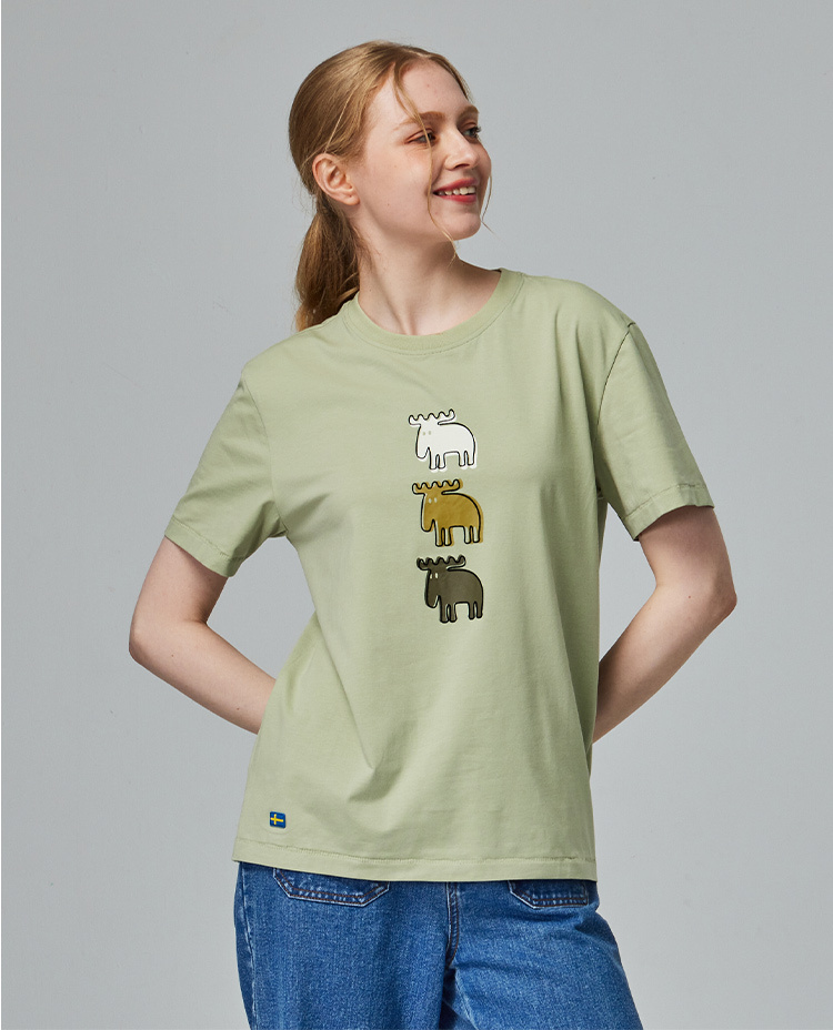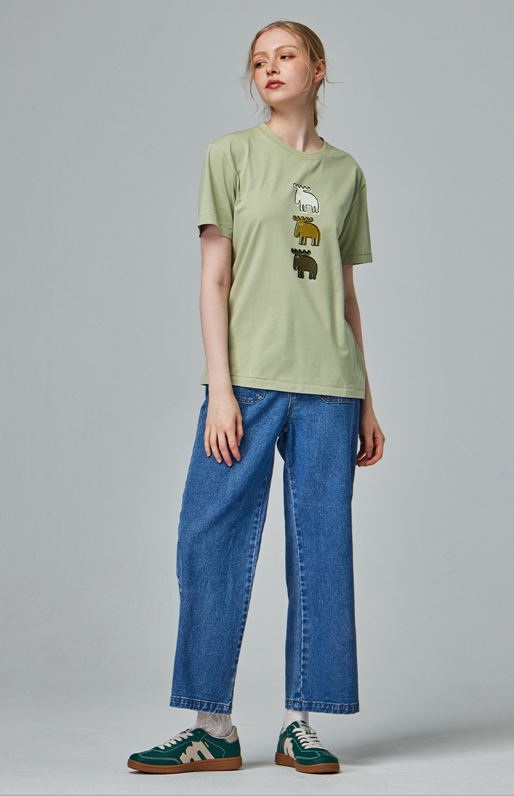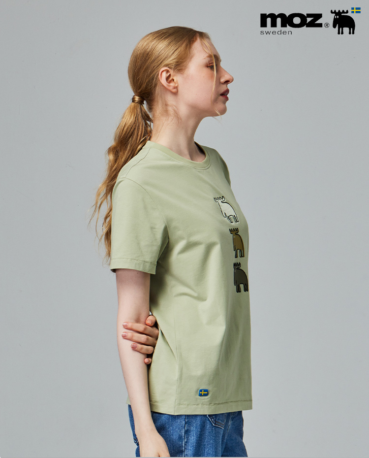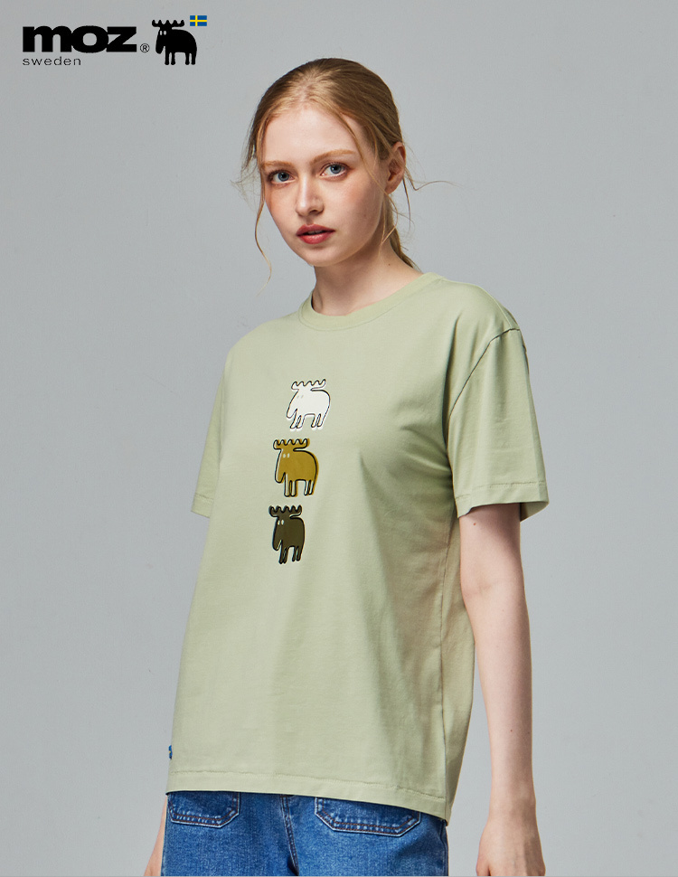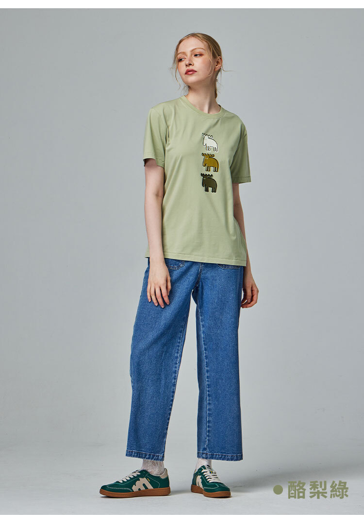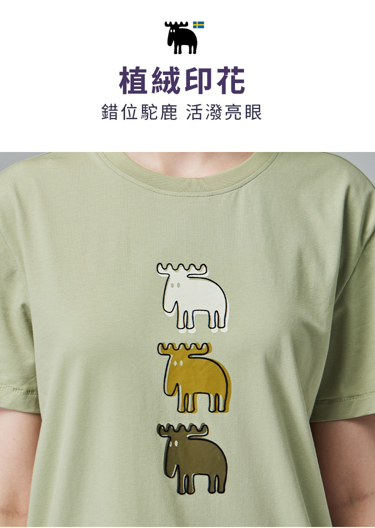 moz 植絨 錯位駝鹿 舒涼 柔彈T恤-酪梨綠 女款