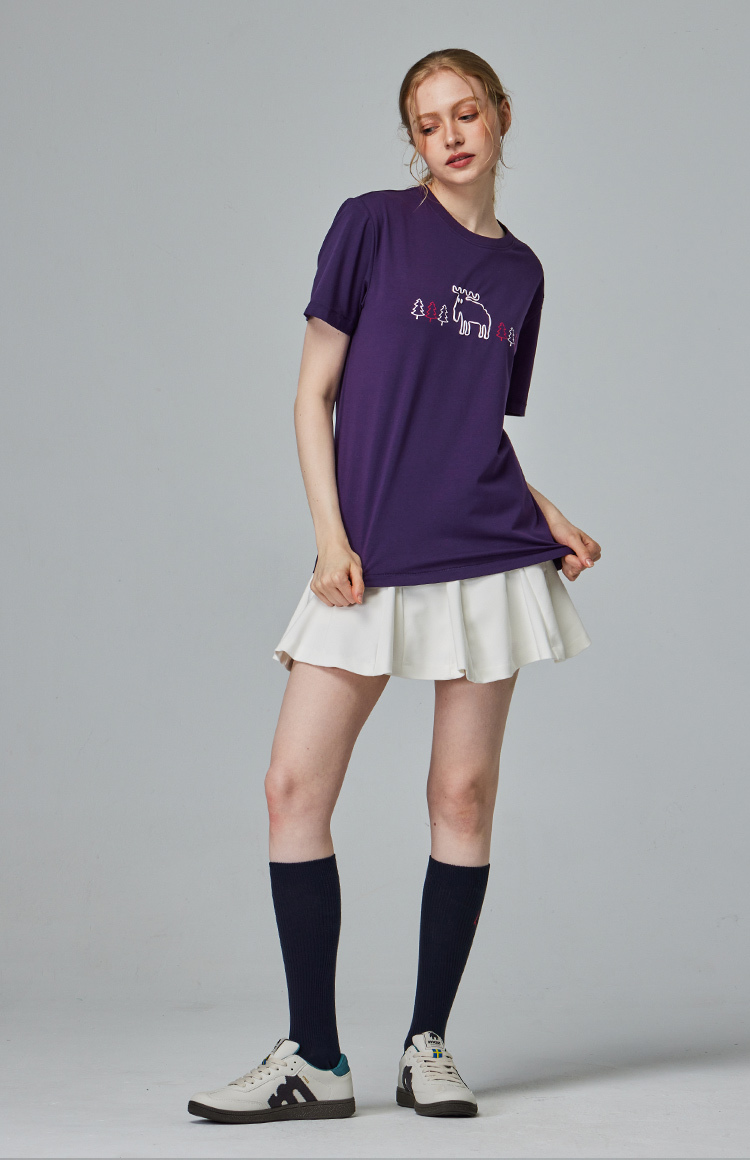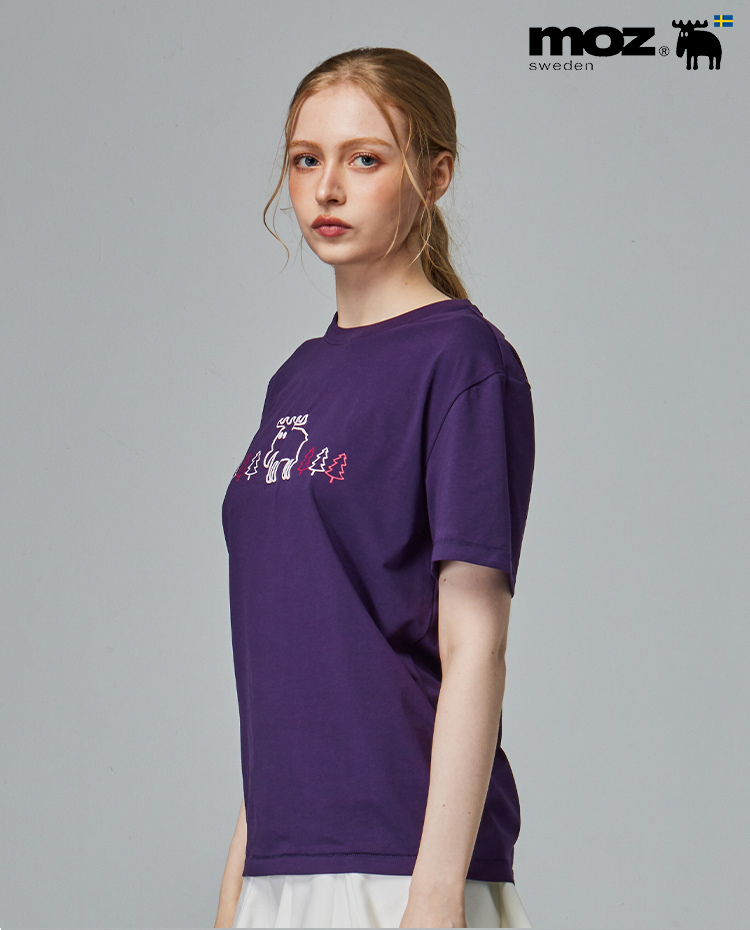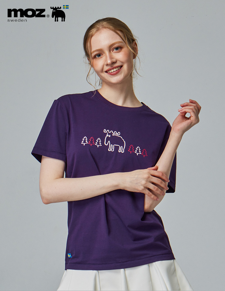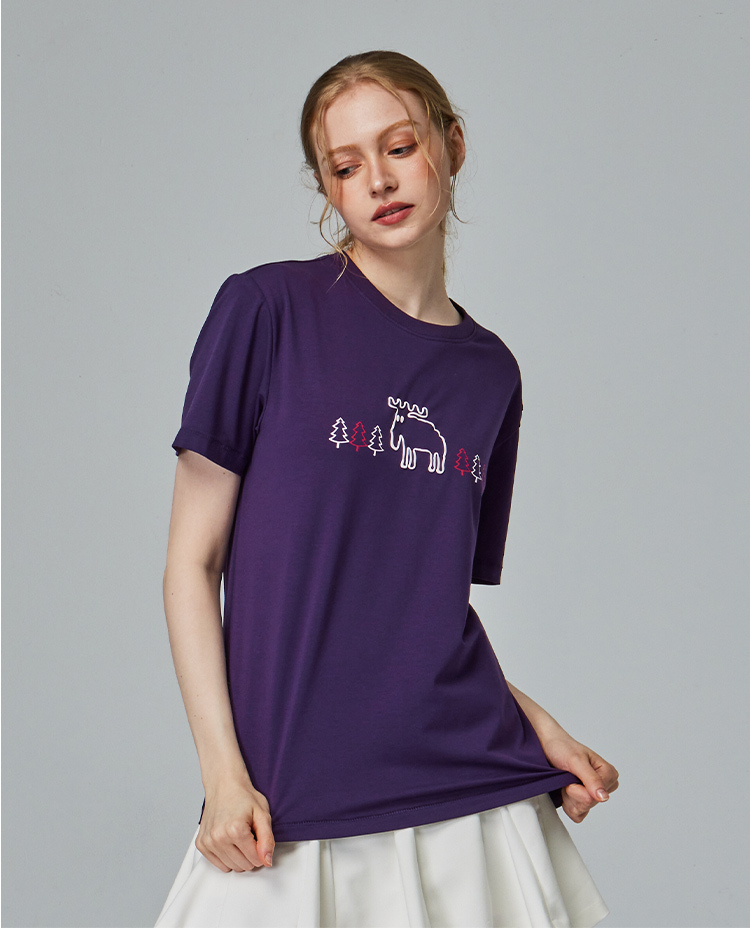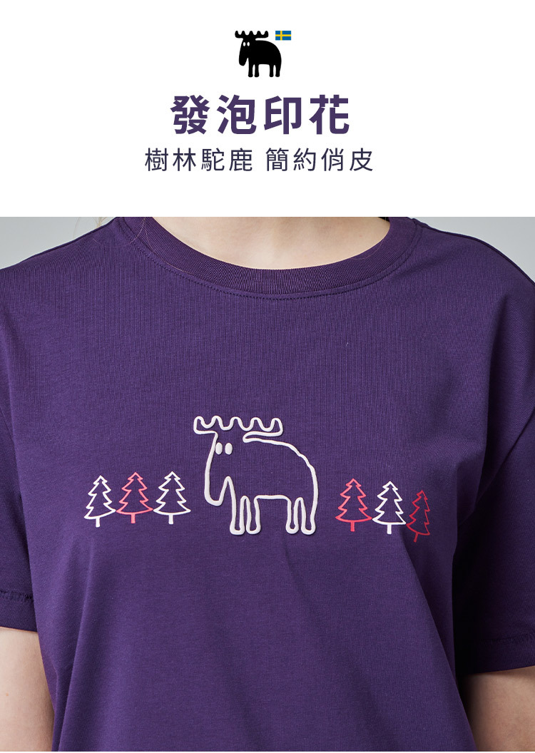 moz 發泡 樹林駝鹿 舒涼 柔彈T恤-深紫 女款
