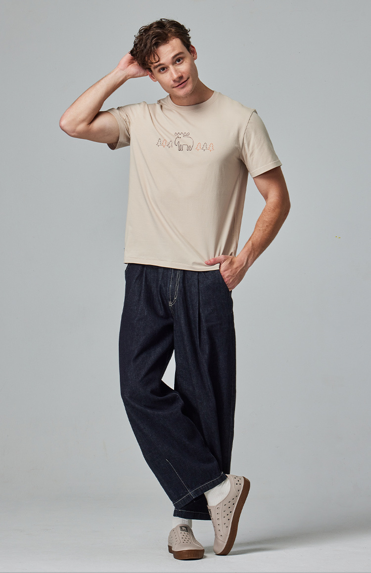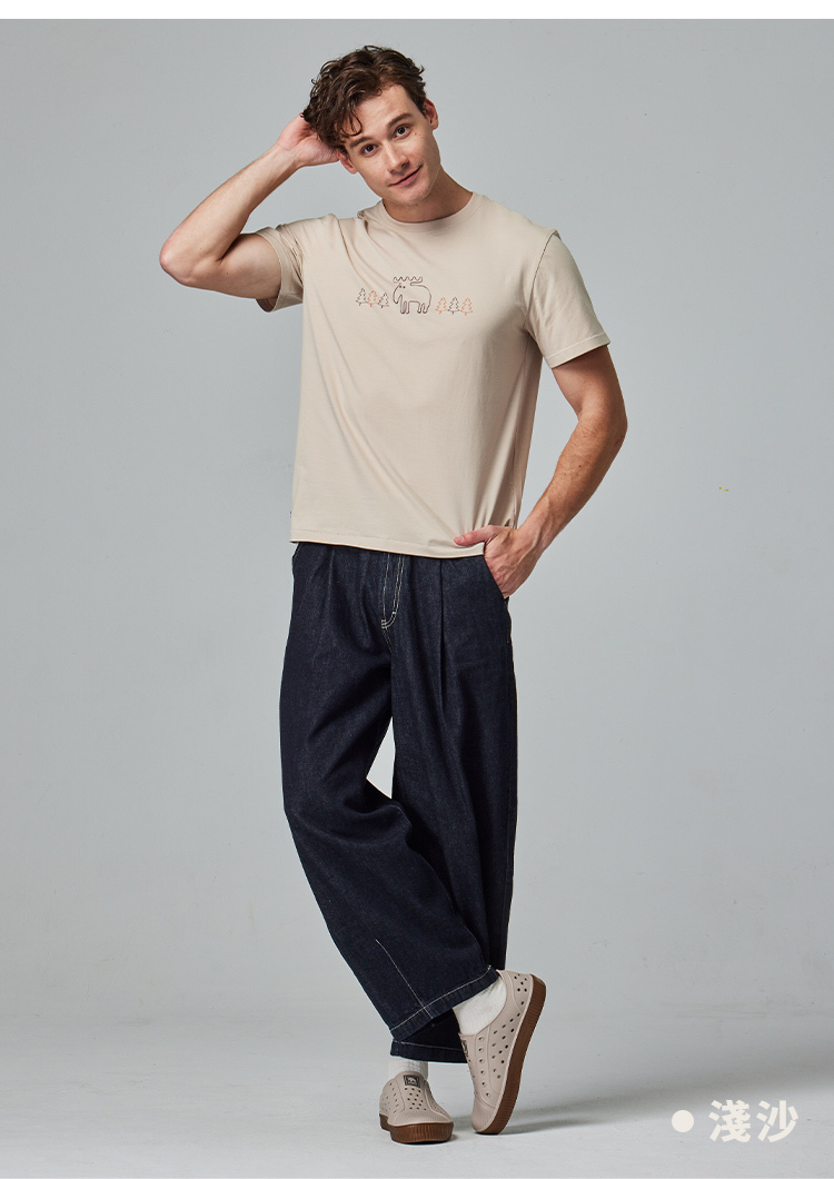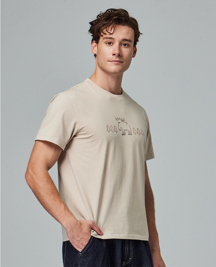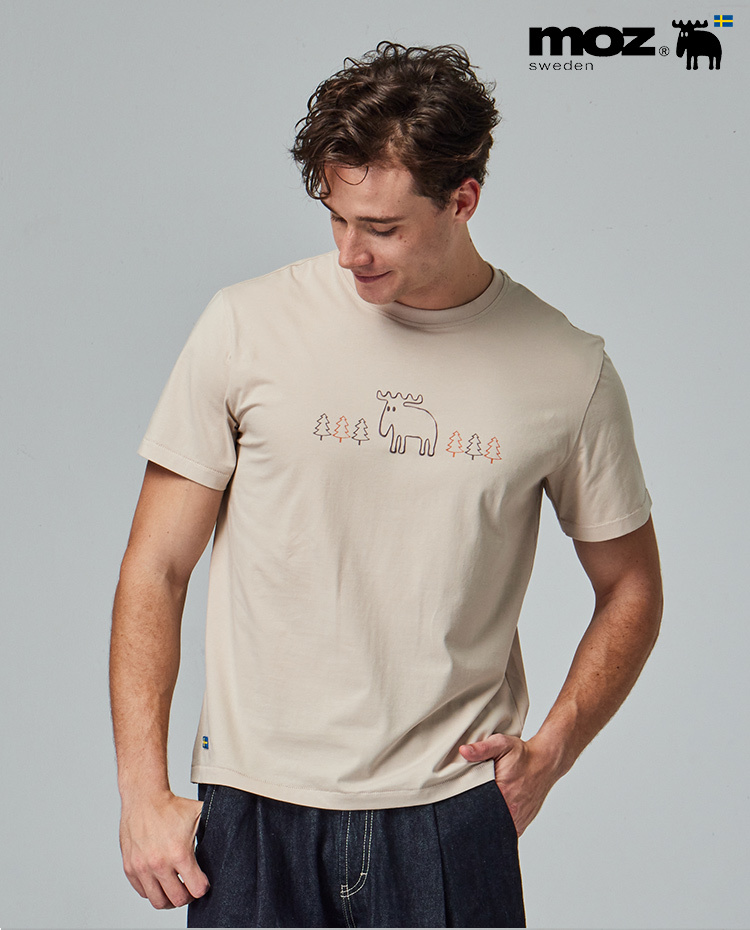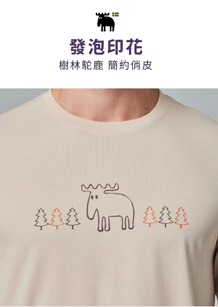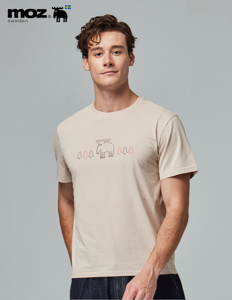 moz 發泡 樹林駝鹿 舒涼 柔彈T恤-淺沙 男款