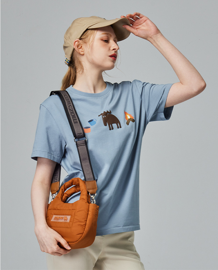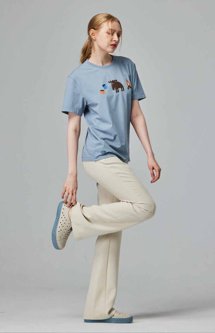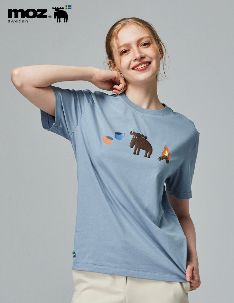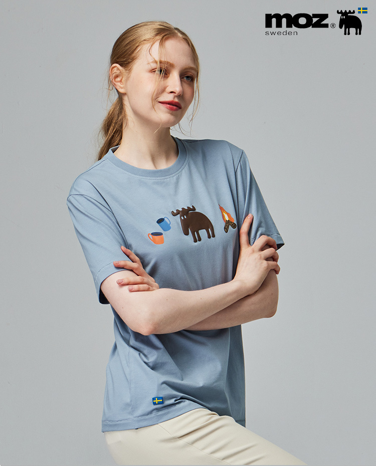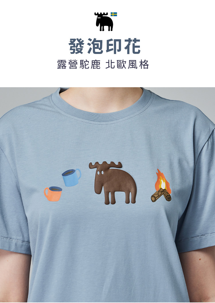 moz 發泡 露營駝鹿 舒涼 柔彈T恤-灰藍 女款
