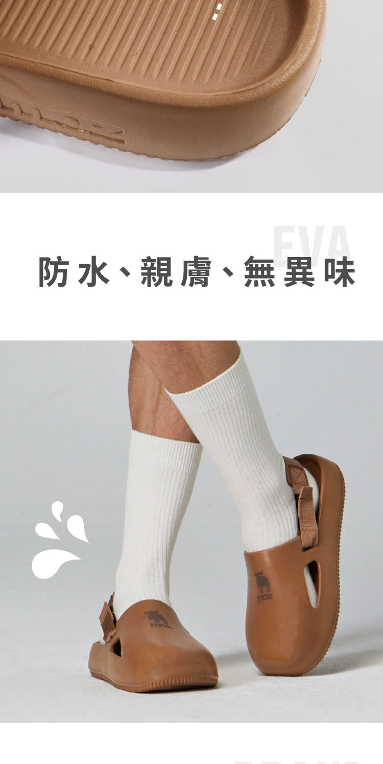 A:使用高彈EVA材質製成,輕盈柔軟、舒適包覆,鞋面親膚不悶熱,適合長時間穿著。