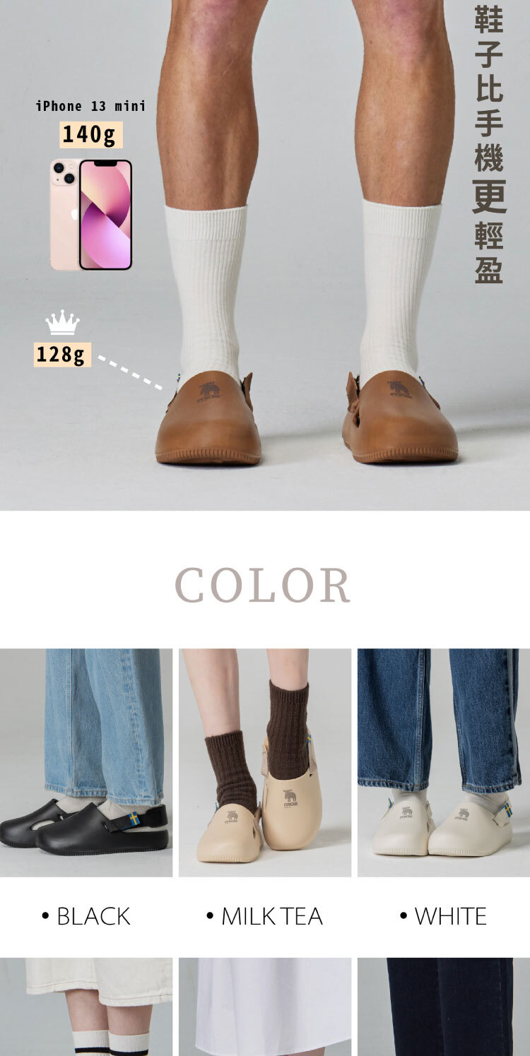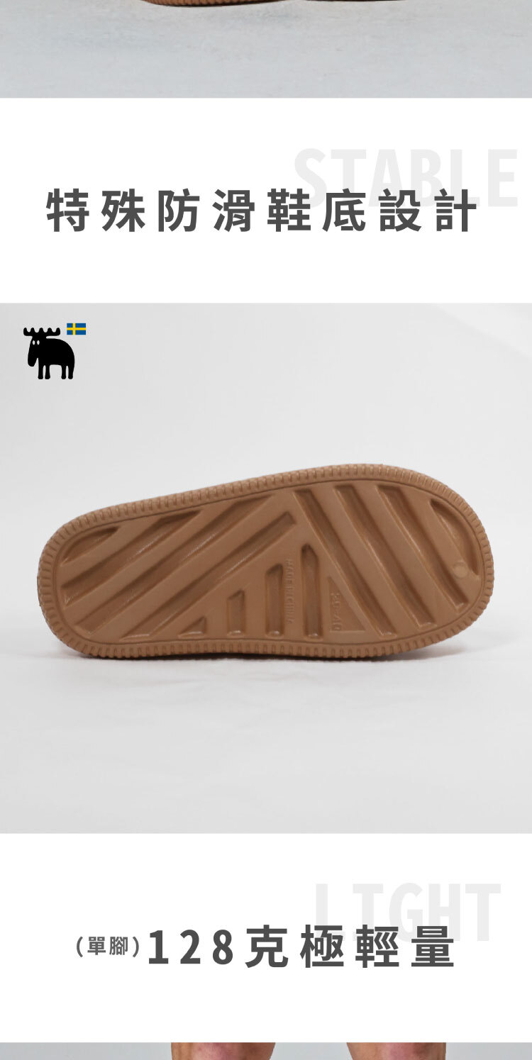 嚴選EVA材質製成,單腳僅約128克,穿起來輕盈零負擔,彈性出色、吸震舒適。