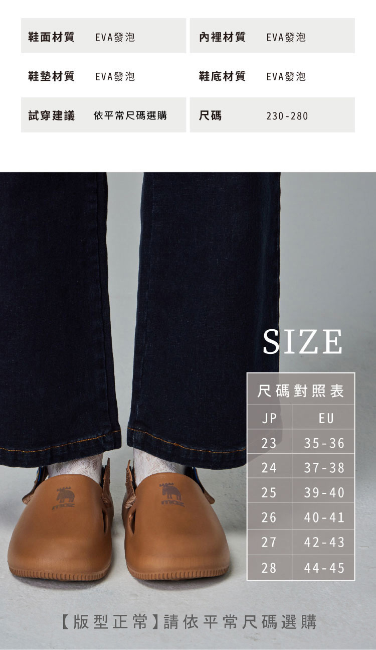 ※ 本產品採用高彈EVA材質製成,大量生產過程中因材質特性與製程可能出現些微痕跡或輕微色差,皆屬正常範圍,不影響產品使用或舒適性。