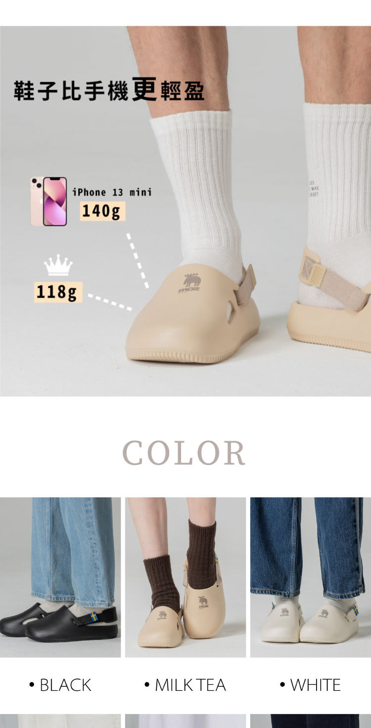 ※ 本產品採用高彈EVA材質製成,大量生產過程中因材質特性與製程可能出現些微痕跡或輕微色差,皆屬正常範圍,不影響產品使用或舒適性。