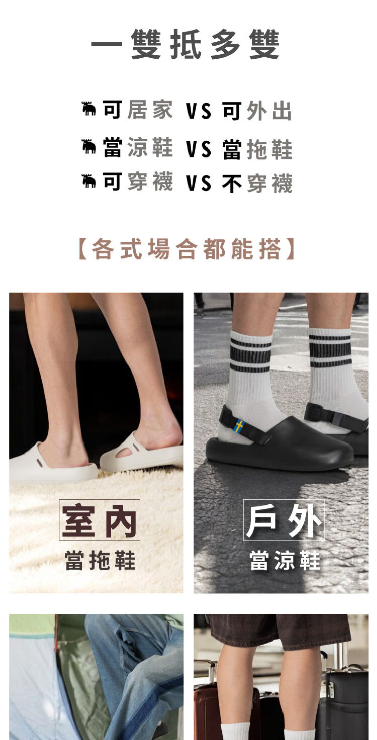 | A:當然可以!巧巴達穆勒涼拖鞋防水、防滑,適合日常通勤、散步、下雨天、外出旅行,一雙搞定各種天氣與場景。 |