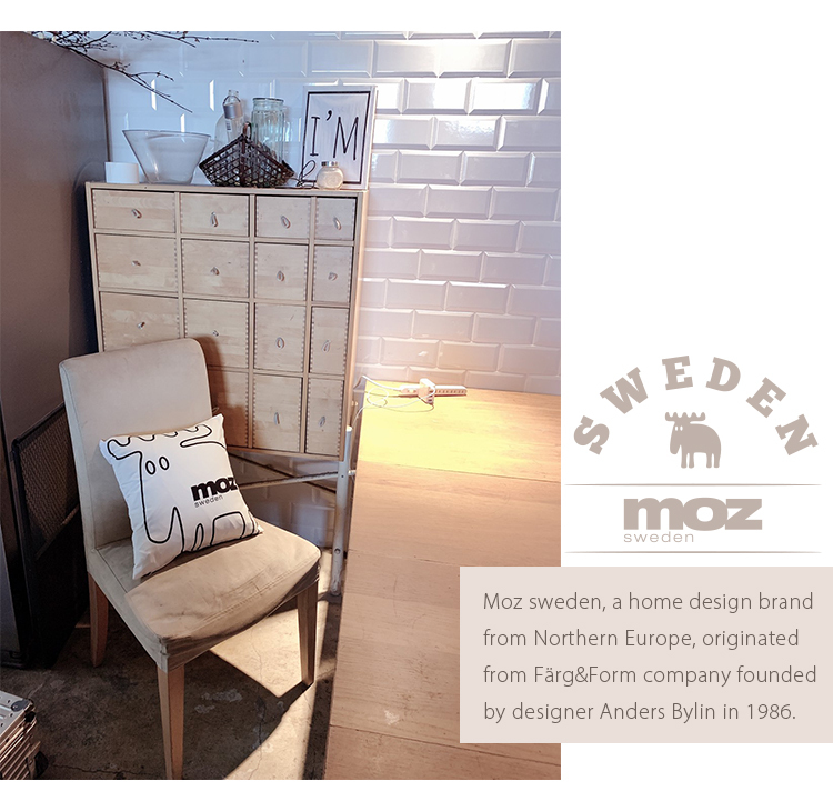 來自北歐的家居設計品牌 mozsweden , 起源自設計師Anders Bylin 1986年創立的Färg&Form公司,主打親子雜貨商品,後來成功創造moz家居設計品牌,以來自瑞典森林的友善駝鹿為logo,充滿童趣純真的形象,深受年輕族群的喜愛。moz所有商品充分展現了簡約的北歐風格,駝鹿可愛質樸的造型加上繽紛色彩,實在讓人很難不被那萌萌的雙眼吸引,更因為簡約的設計搭上實用機能性,現在moz於歐美與日本、韓國等國家都相當受歡迎!