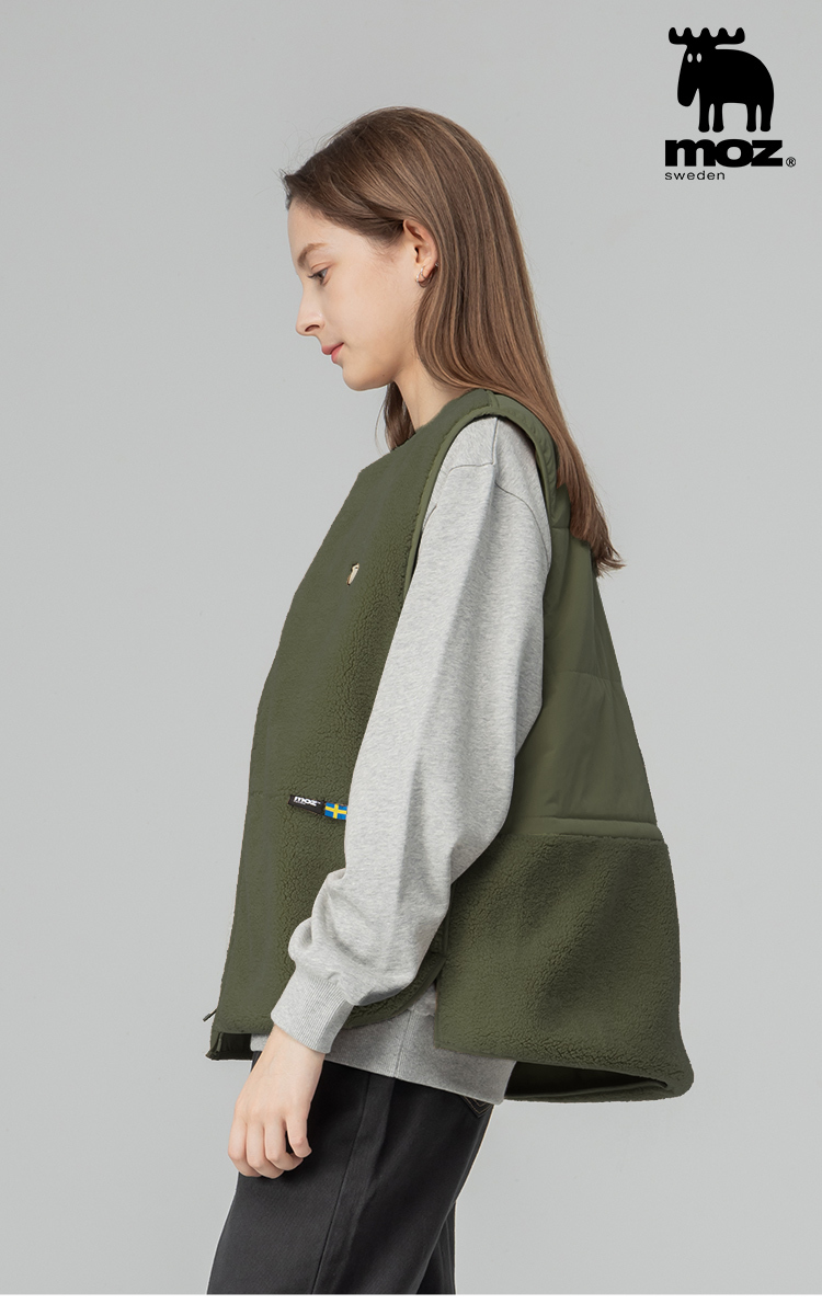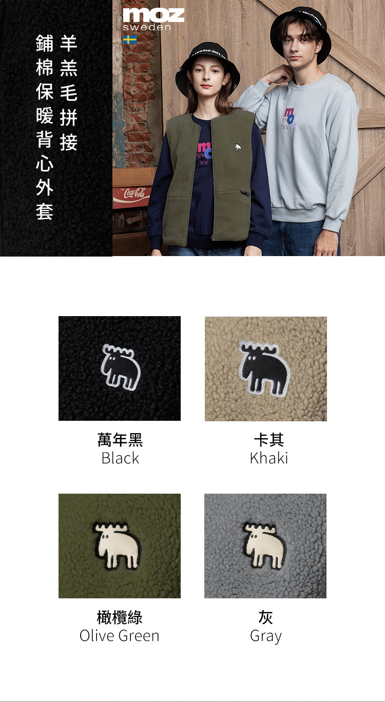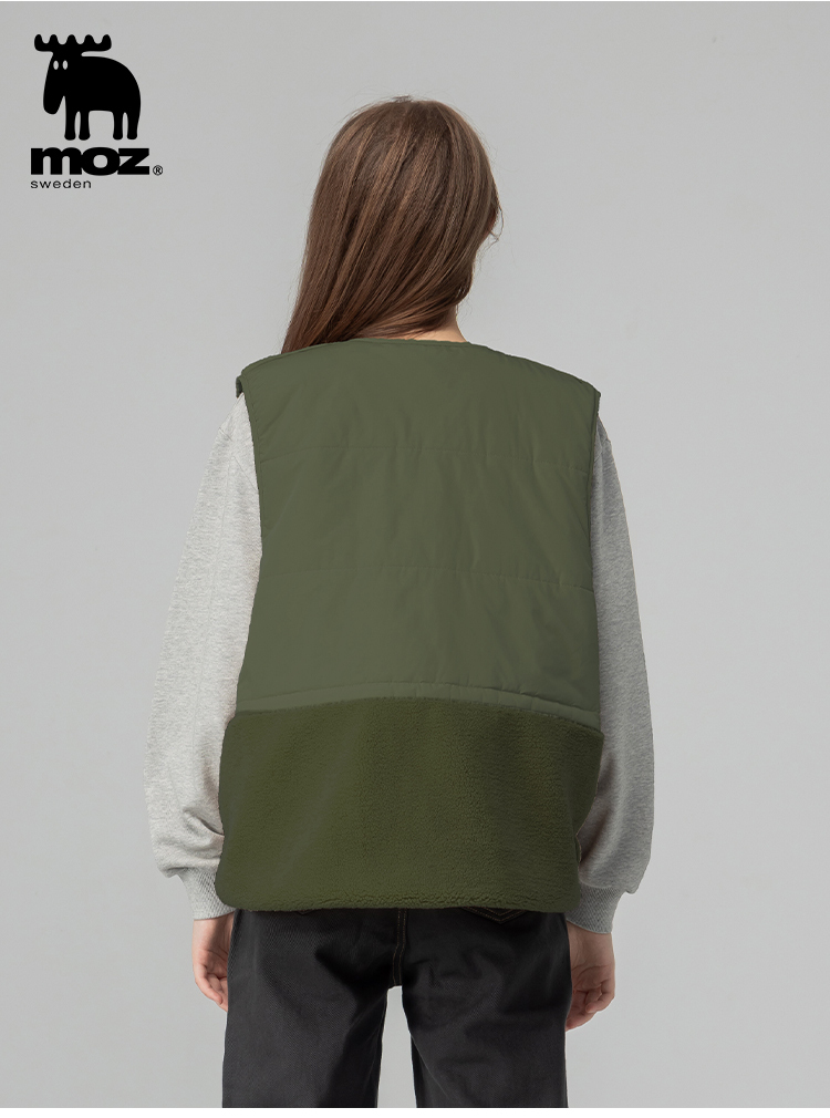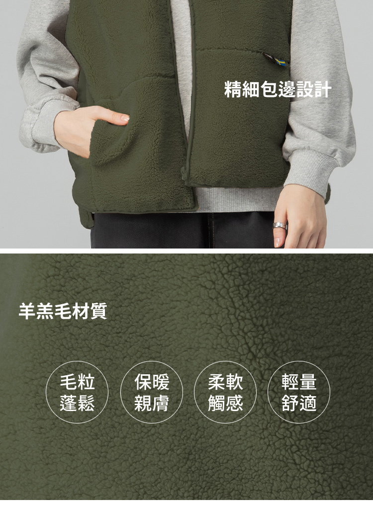 羊羔毛拼接鋪棉保暖背心外套(橄欖綠)女款
