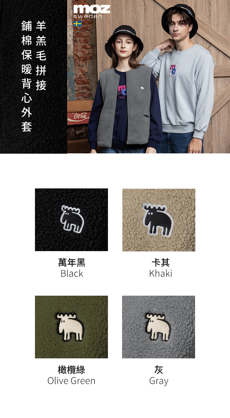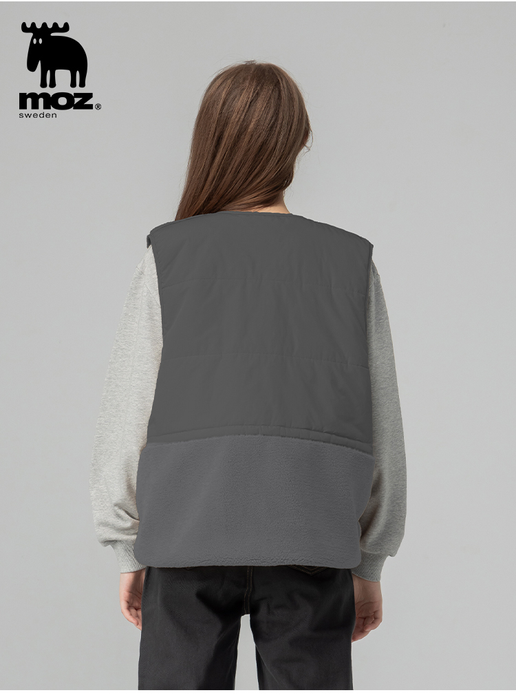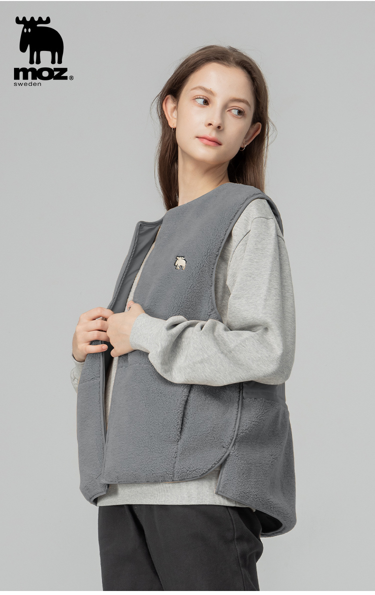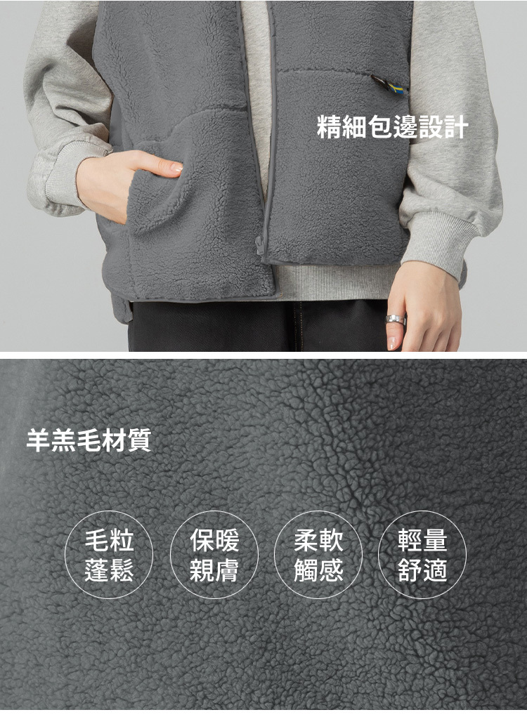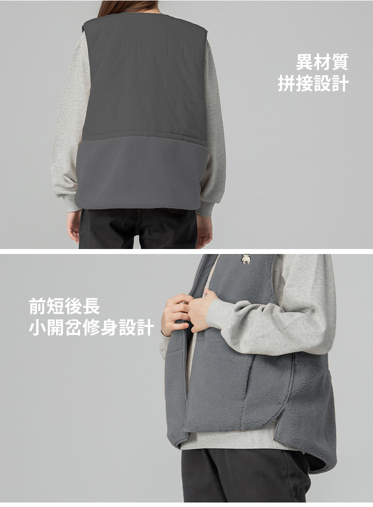 羊羔毛拼接鋪棉保暖背心外套(灰)女款