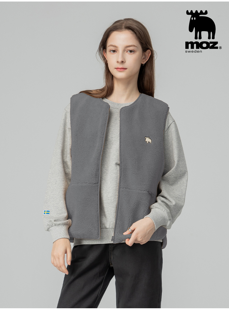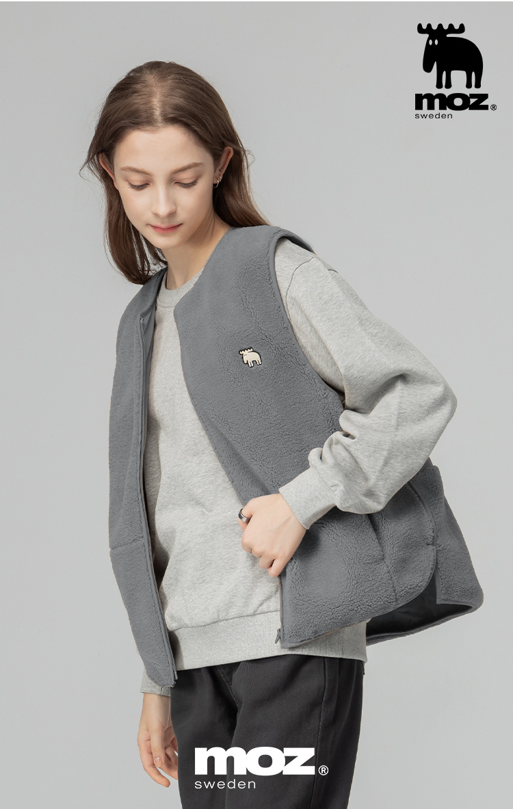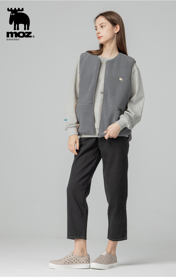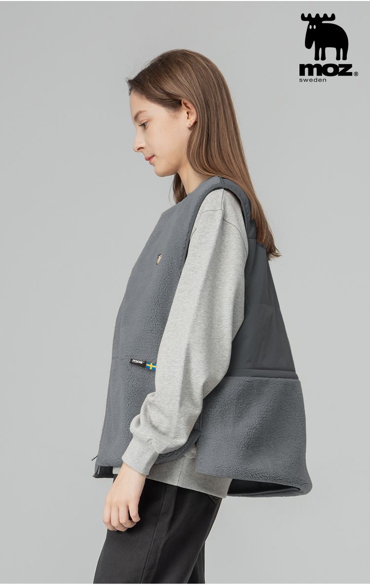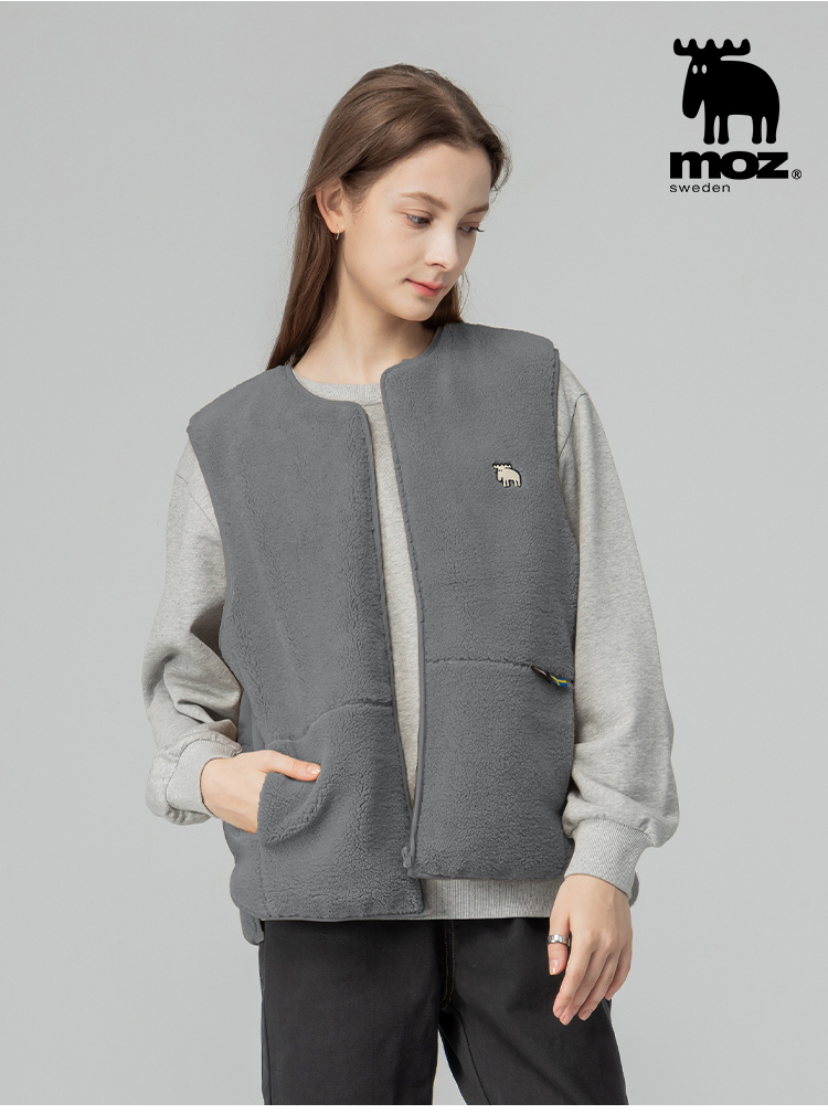 羊羔毛拼接鋪棉保暖背心外套(灰)女款