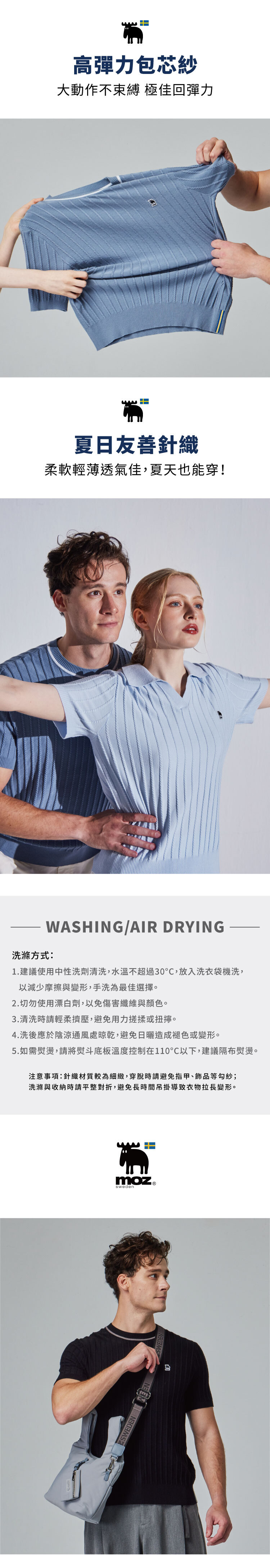 洗滌與收納時請平整對折,避免長時間吊掛導致衣物拉長變形。