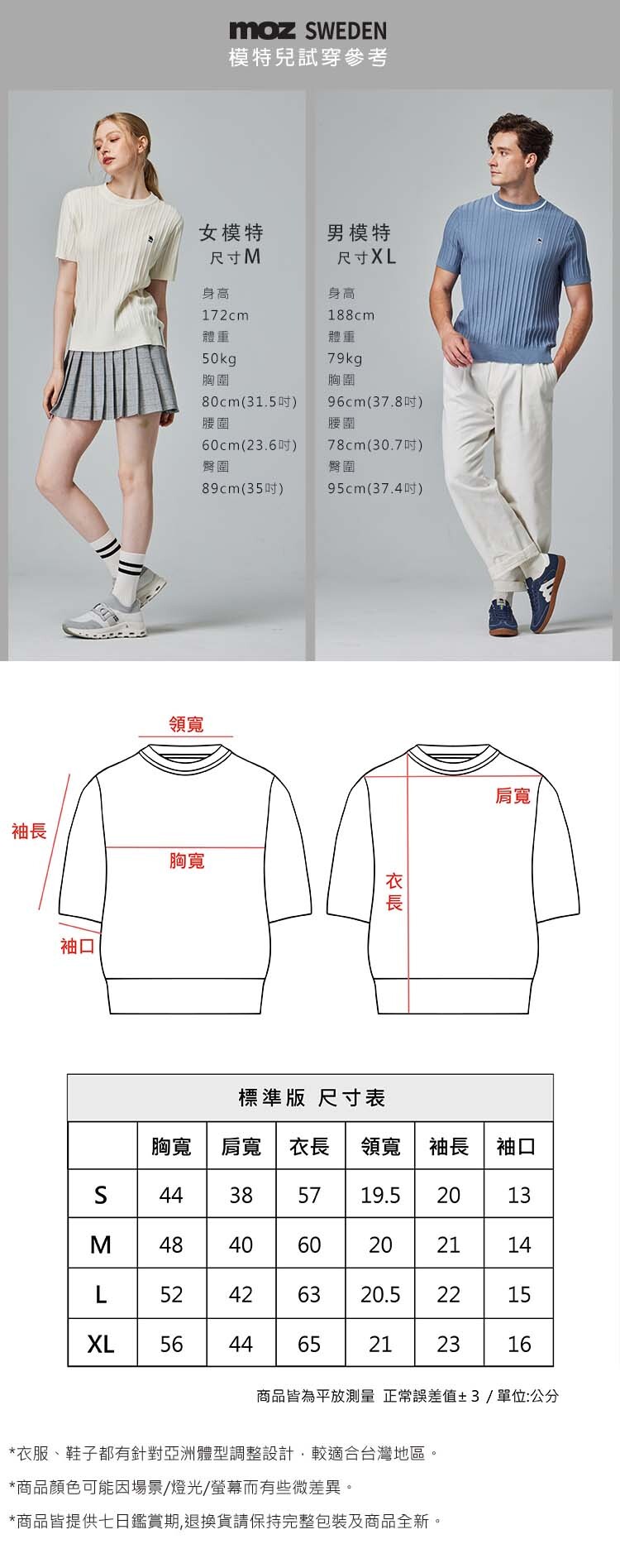 洗滌與收納時請平整對折,避免長時間吊掛導致衣物拉長變形。