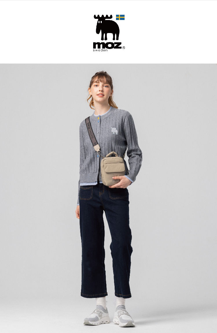 以瑞典國旗為靈感的織紋設計,融入 moz 經典刺繡 LOGO,細節低調卻充滿辨識度,襯托品牌質感。
