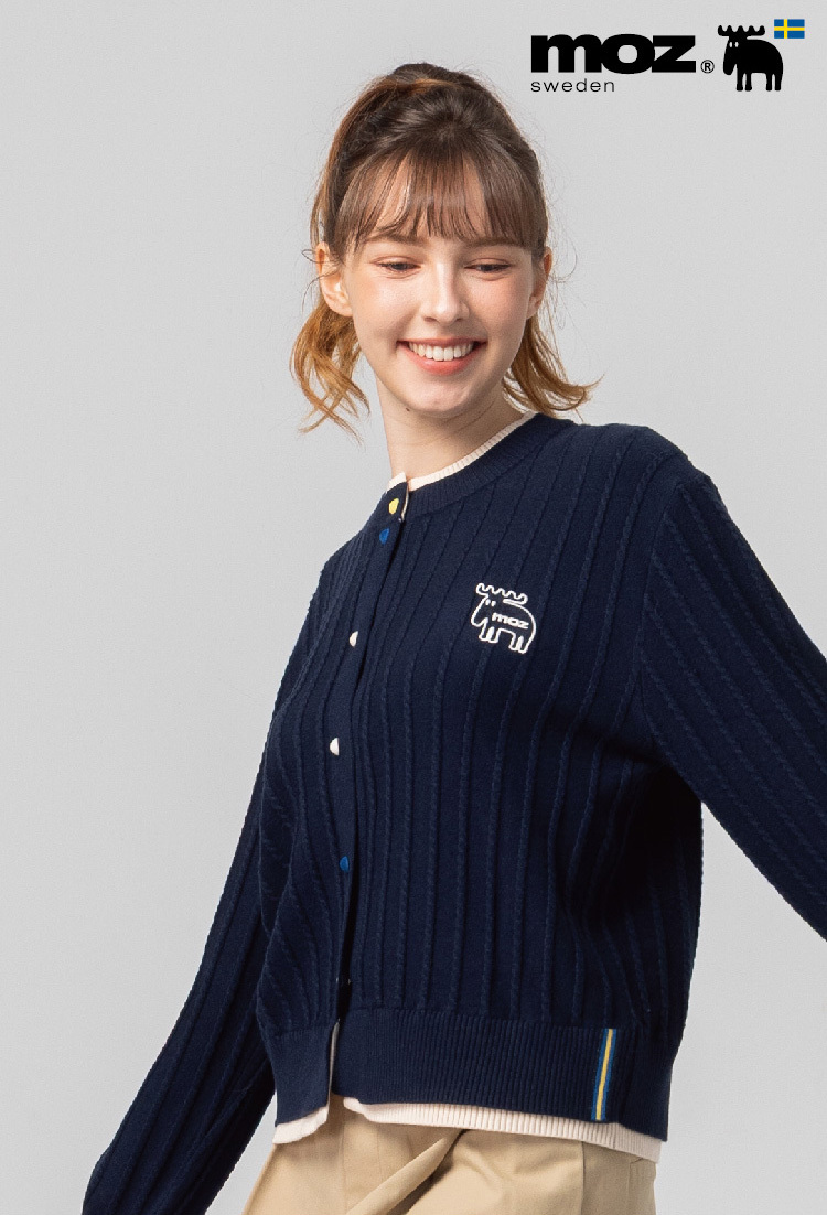 以瑞典國旗為靈感的織紋設計,融入 moz 經典刺繡 LOGO,細節低調卻充滿辨識度,襯托品牌質感。
