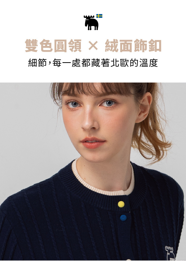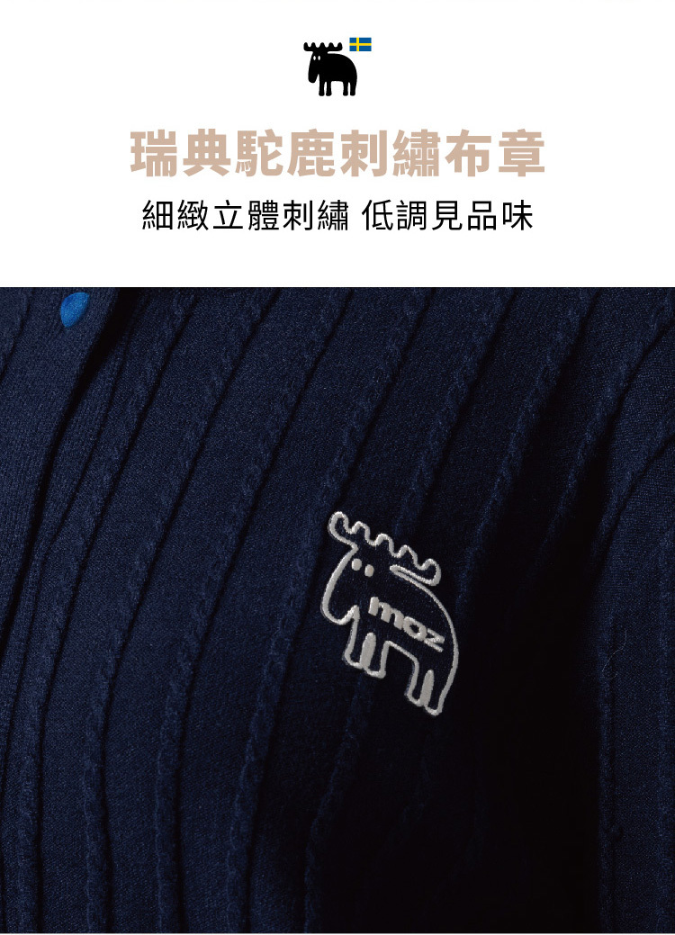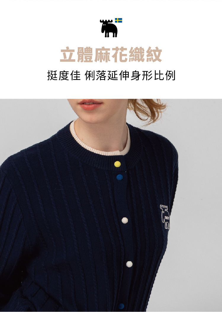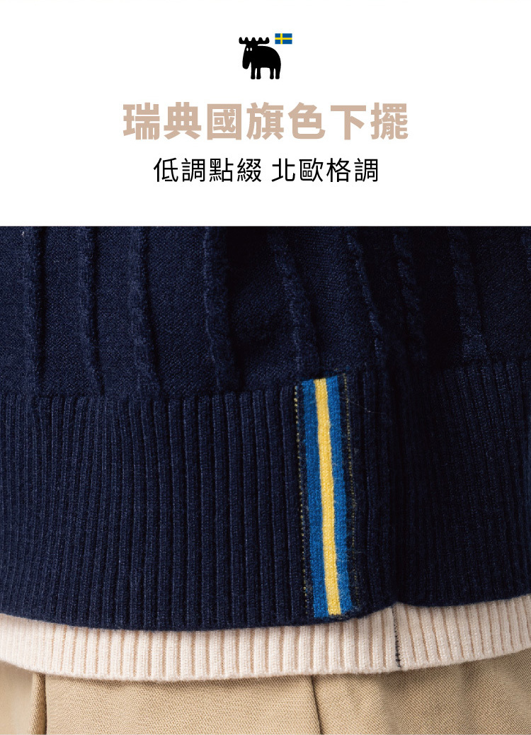 | A:採用高彈包芯紗製成,柔軟親膚、彈性佳不緊繃。結合立體麻花織紋與瑞典國旗織紋設計,展現北歐簡約質感。 |