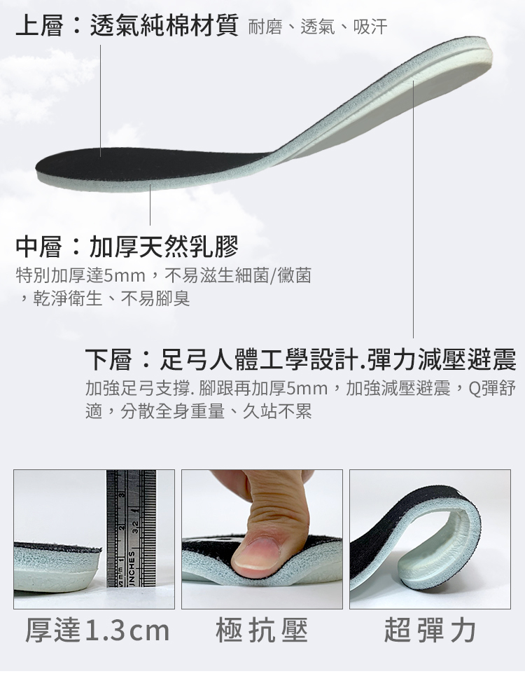■ 彈力減壓避震鞋墊:加厚乳膠彈力設計,舒適柔軟