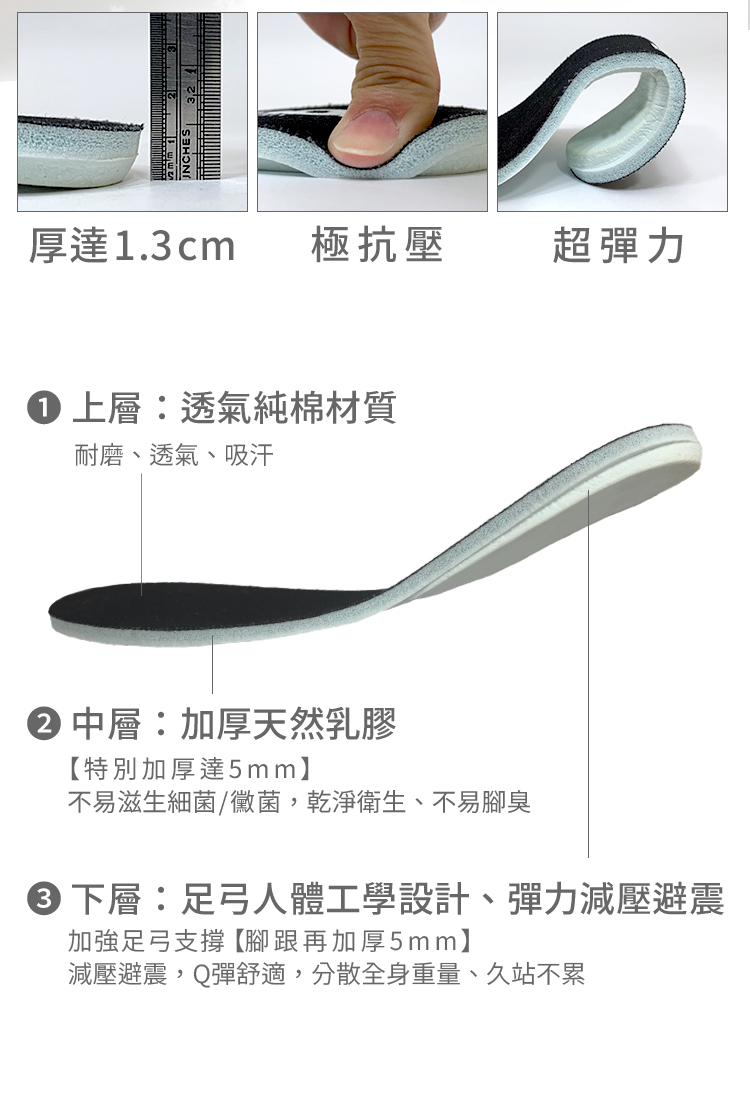 n 彈力減壓避震鞋墊:加厚乳膠彈力設計,舒適柔軟