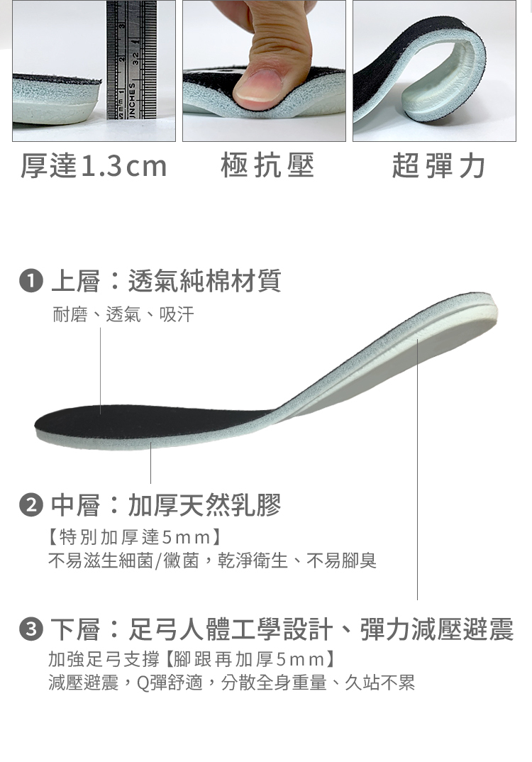 n 彈力減壓避震鞋墊:加厚乳膠彈力設計,舒適柔軟
