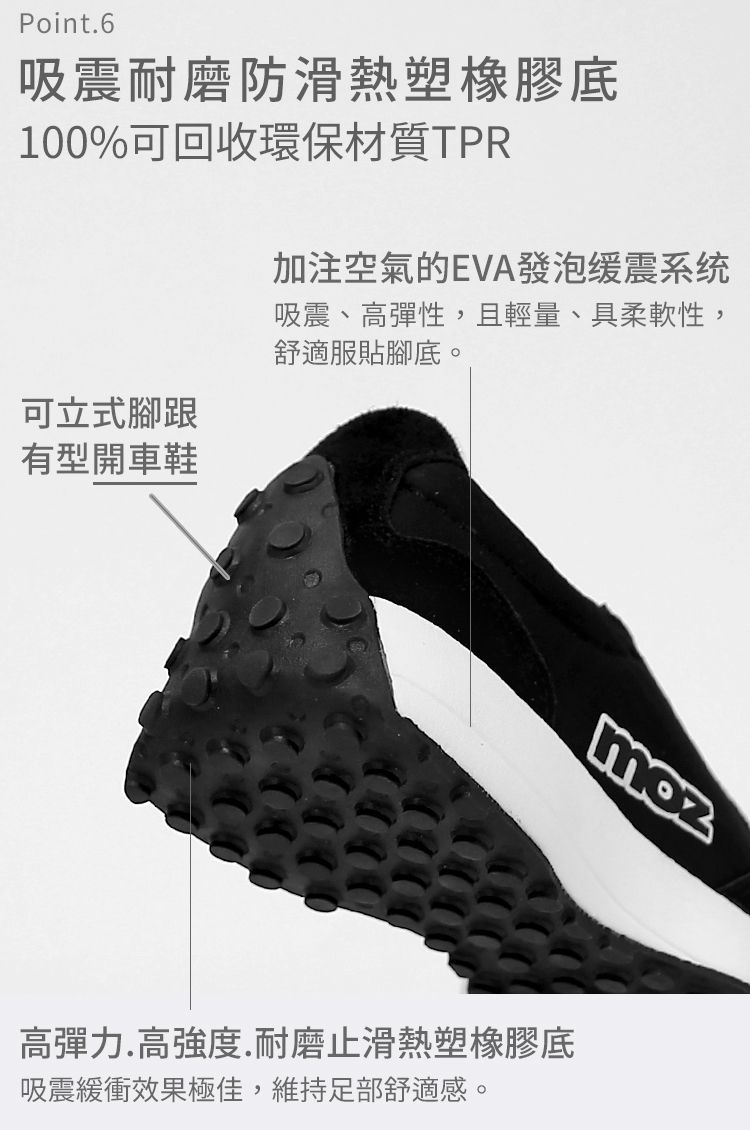 【高彈力.高強度.耐磨止滑熱塑橡膠底】吸震緩衝效果極佳,維持足部舒適感。