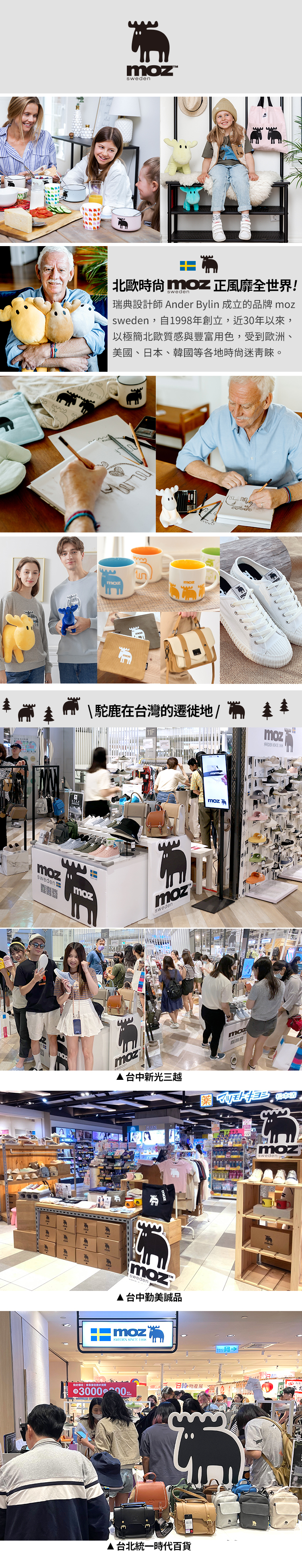 來自北歐的家居設計品牌 moz sweden , 起源自設計師Anders Bylin 1986年創立的Färg&Form公司,主打親子雜貨商品,後來成功創造moz家居設計品牌,以來自瑞典森林的友善駝鹿為logo,充滿童趣純真的形象,深受年輕族群的喜愛。moz有商品充分展現了簡約的北歐風格,駝鹿可愛質樸的造型加上繽紛色彩,實在讓人很難不被那萌萌的雙眼吸引,更因為簡約的設計搭上實用機能性,現在moz於歐美與日本、韓國等國家都相當受歡迎!