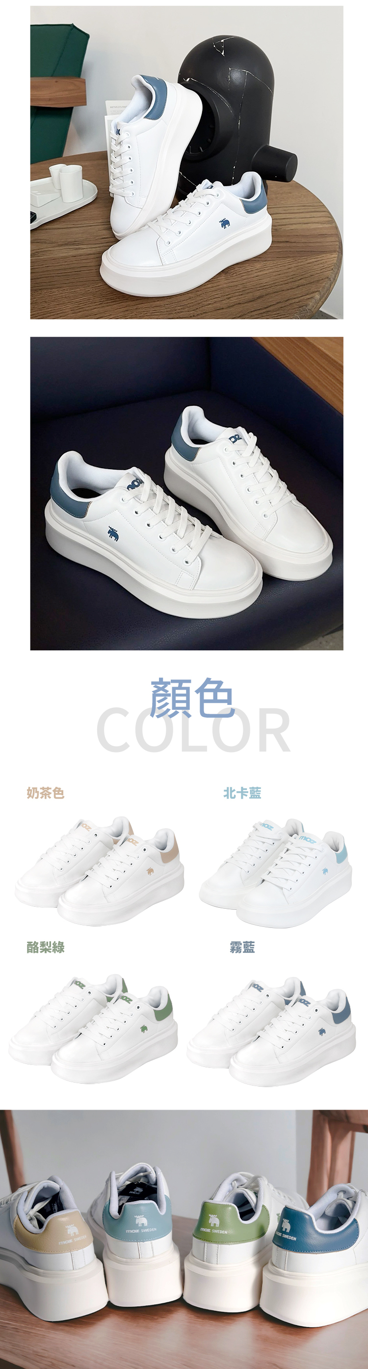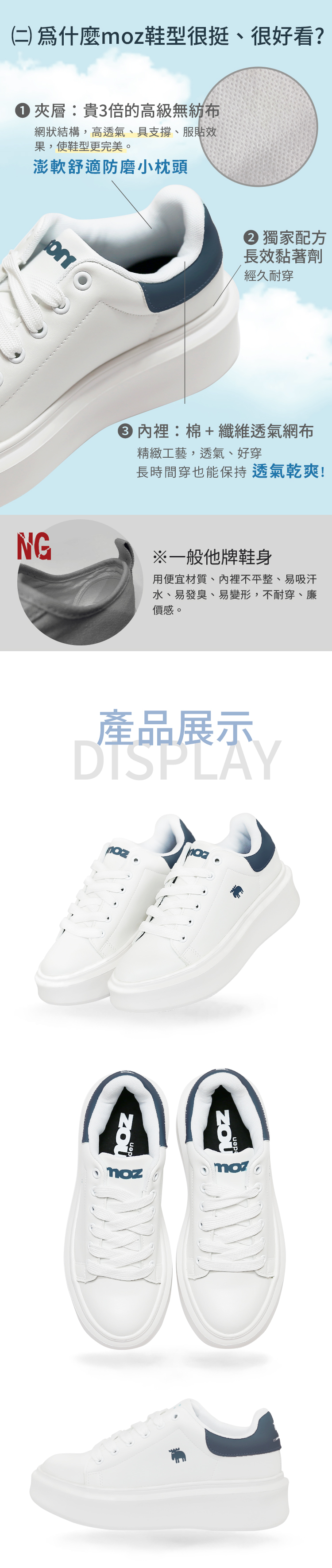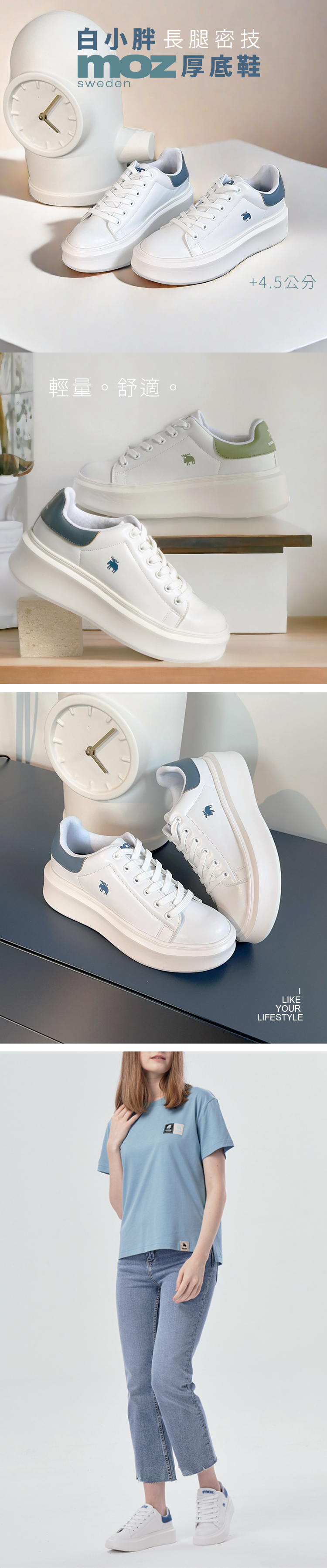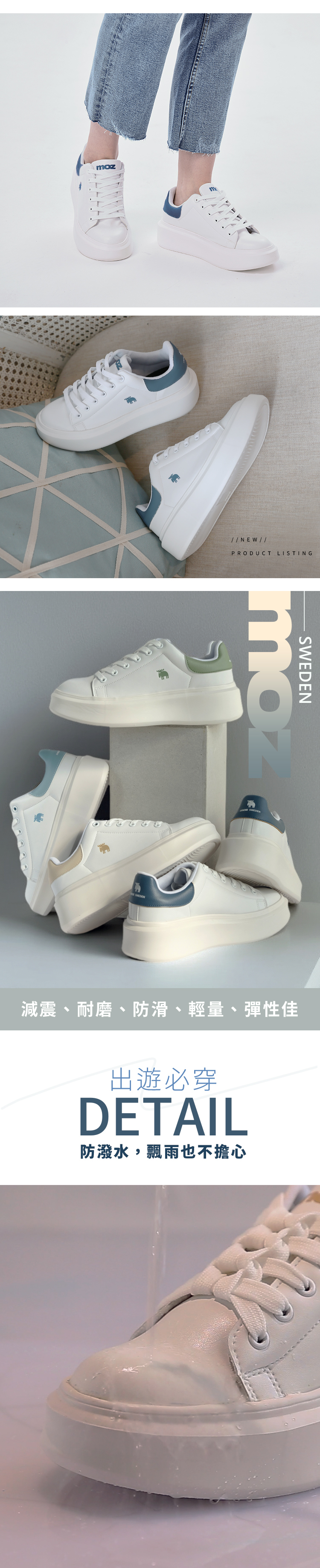 moz瑞典 駝鹿 白小胖 防潑水 舒適皮質增高厚底鞋(霧藍)