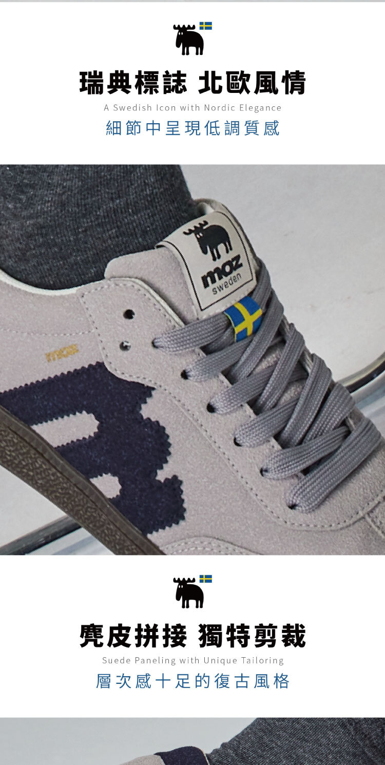 鞋面選用麂皮質感與合成皮縫紉拼接,打造層次分明的視覺風格。