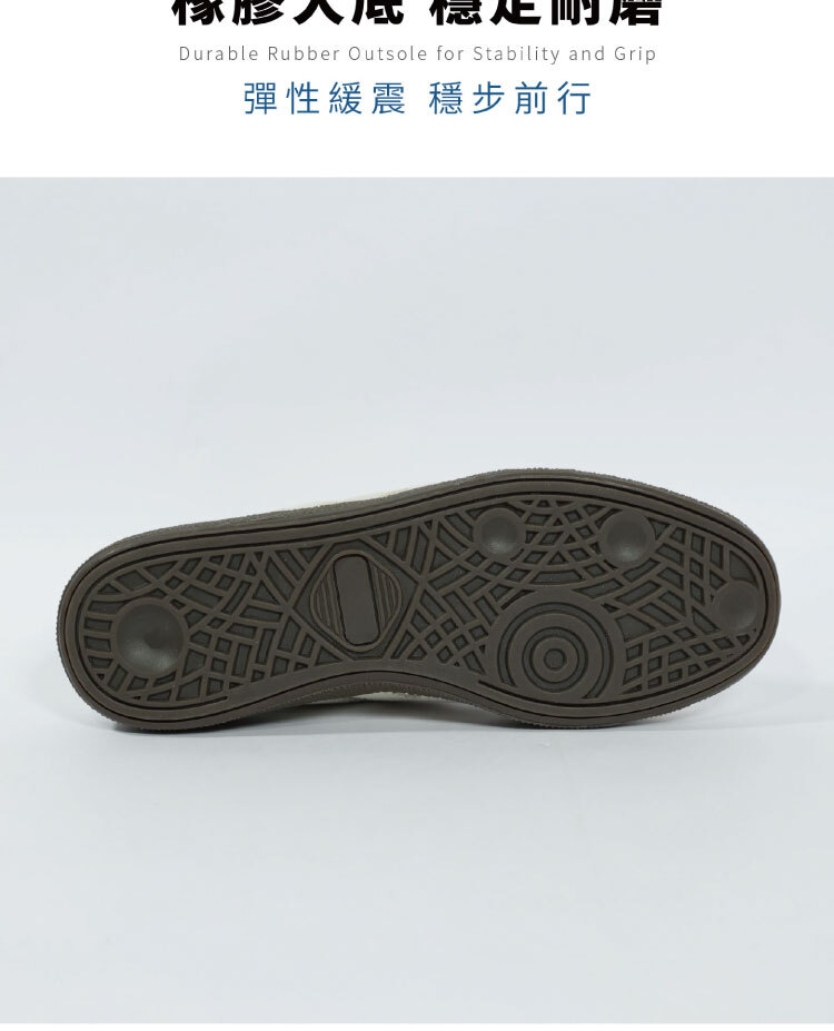 | A:鞋底使用橡膠材質,具備良好的抓地力與耐磨性,日常走路穩定舒適。 |